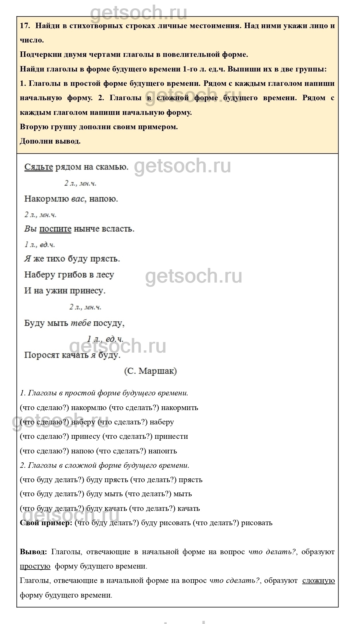 Рассмотрим ответы на Упражнение 17 из тетради для самостоятельной работы по русскому языку для 4 класса Байковой