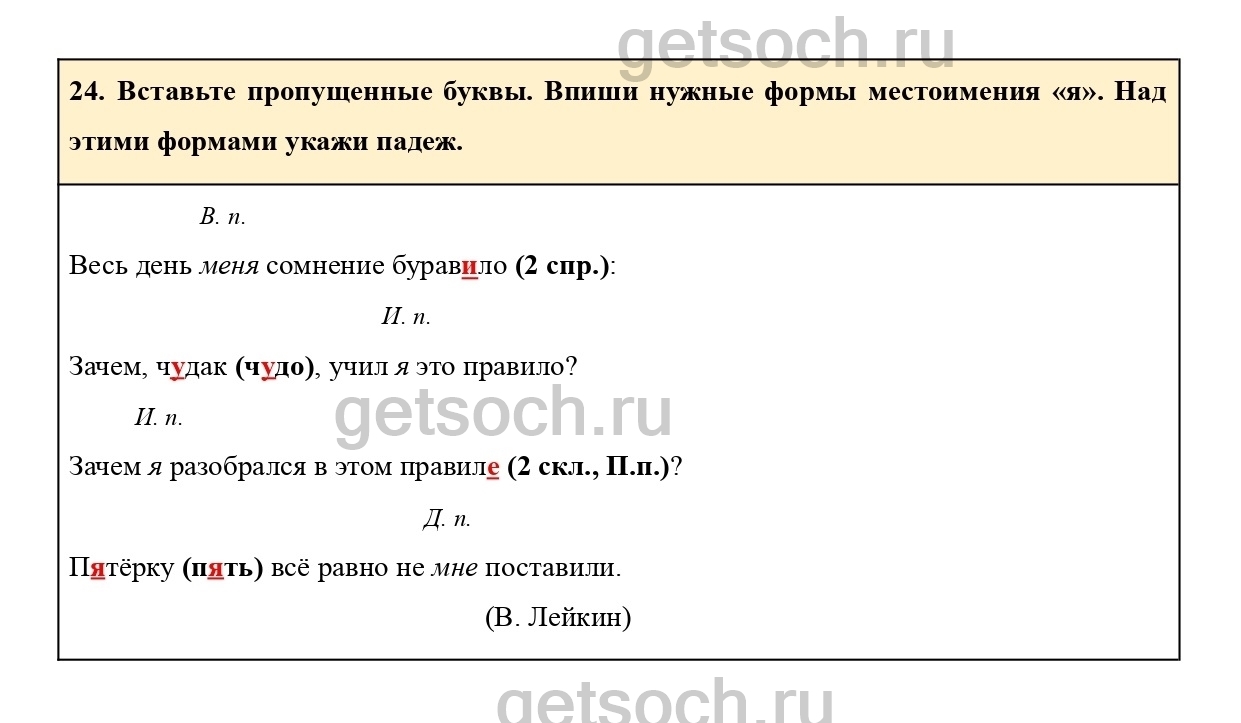 24. Вставьте пропущенные буквы. Впиши нужные формы местоимения «я». Над этими формами укажи падеж.