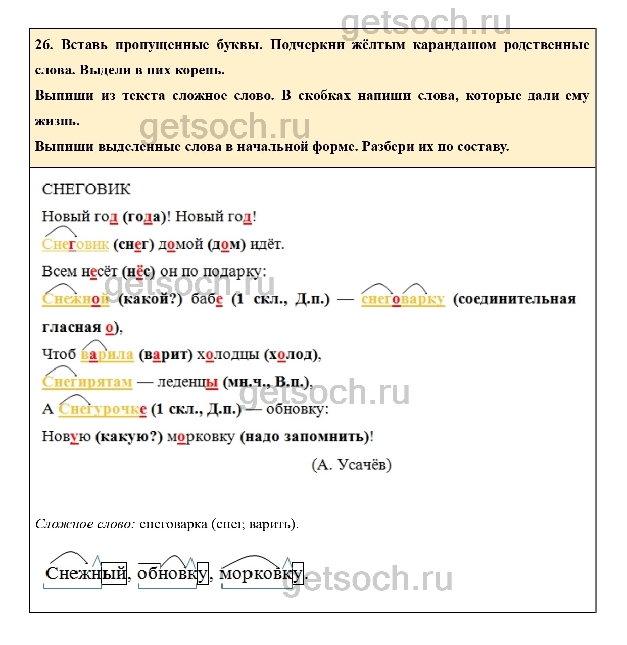 26. Вставь пропущенные буквы. Подчеркни жёлтым карандашом родственные слова. Выдели в них корень.
