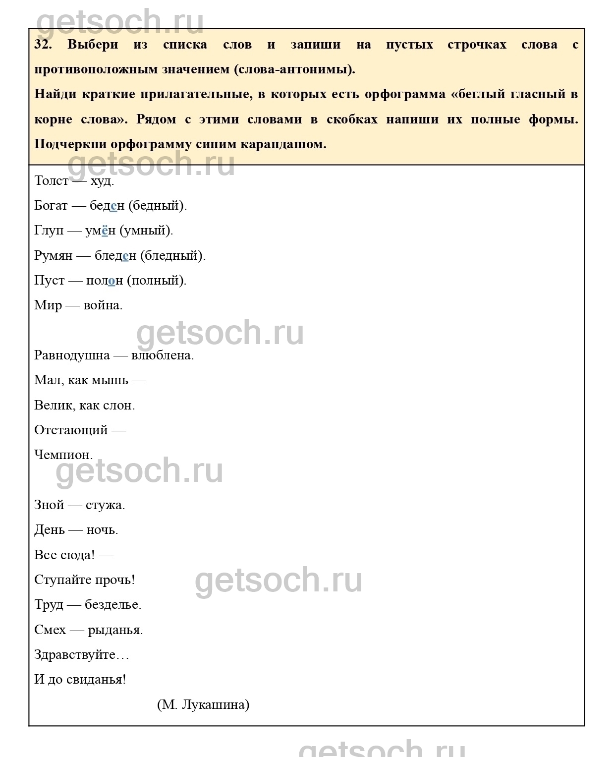 32. Выбери из списка слов и запиши на пустых строчках слова с противоположным значением (слова-антонимы).