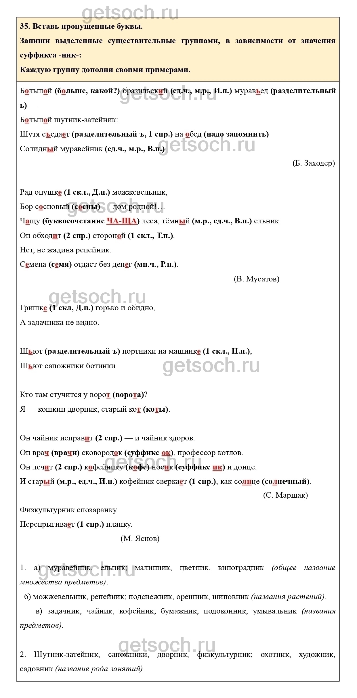 Рассмотрим ответы на Упражнение 35 из тетради для самостоятельной работы по русскому языку для 4 класса Байковой