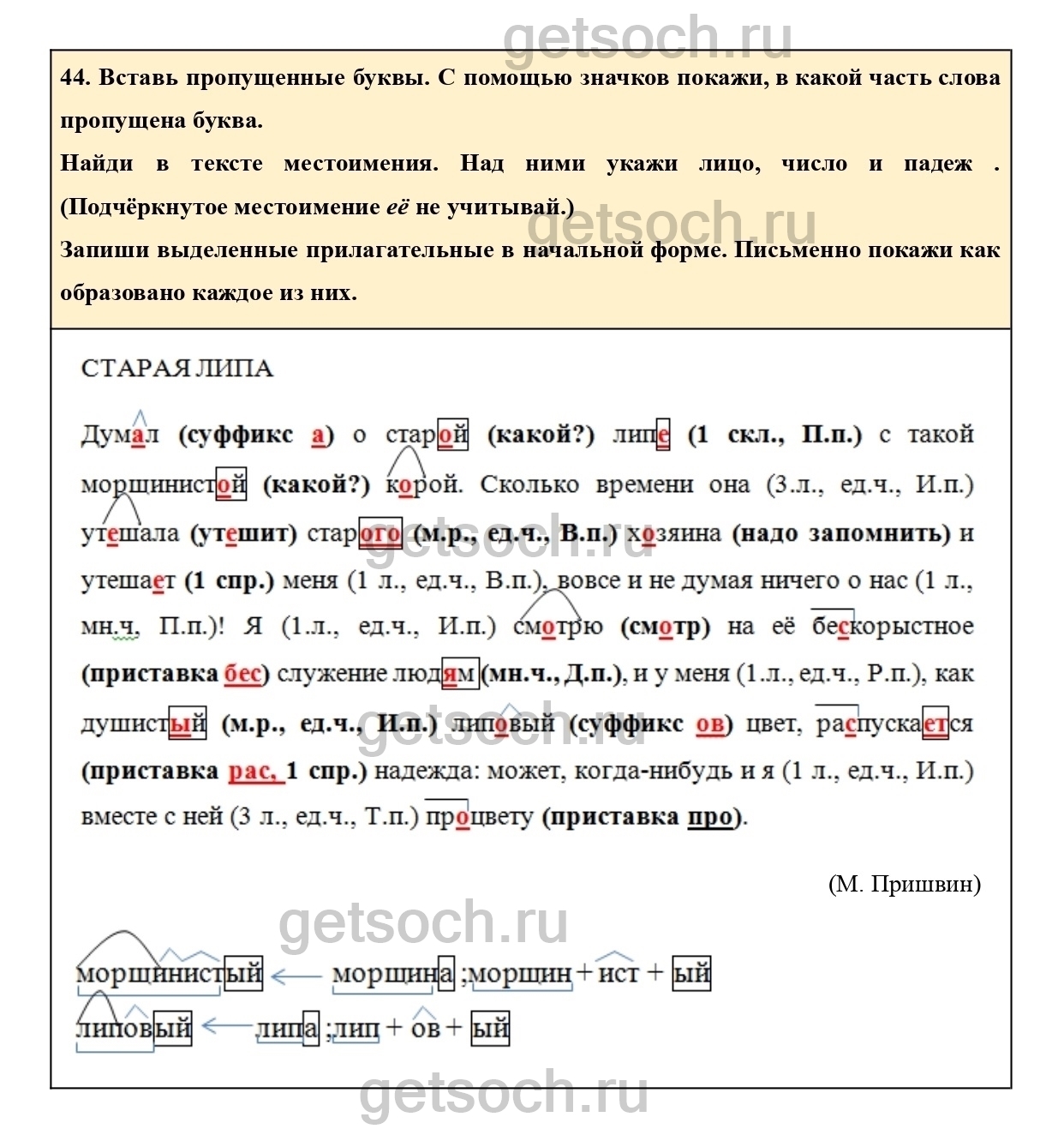 Рассмотрим ответы на Упражнение 44 из тетради для самостоятельной работы по русскому языку для 4 класса Байковой