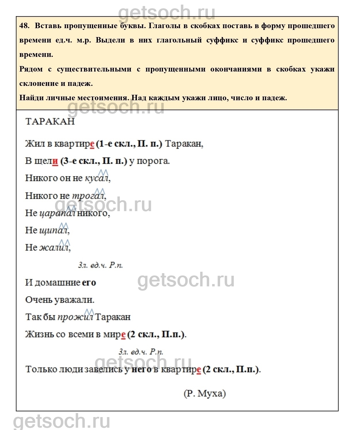 48. Вставь пропущенные буквы. Глаголы в скобках поставь в форму прошедшего времени ед.ч. м.р. Выдели в них глагольный суффикс и суффикс прошедшего времени.