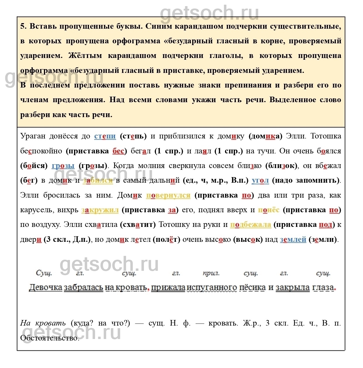 Рассмотрим ответы на Упражнение 5 из тетради для самостоятельной работы по русскому языку для 4 класса Байковой