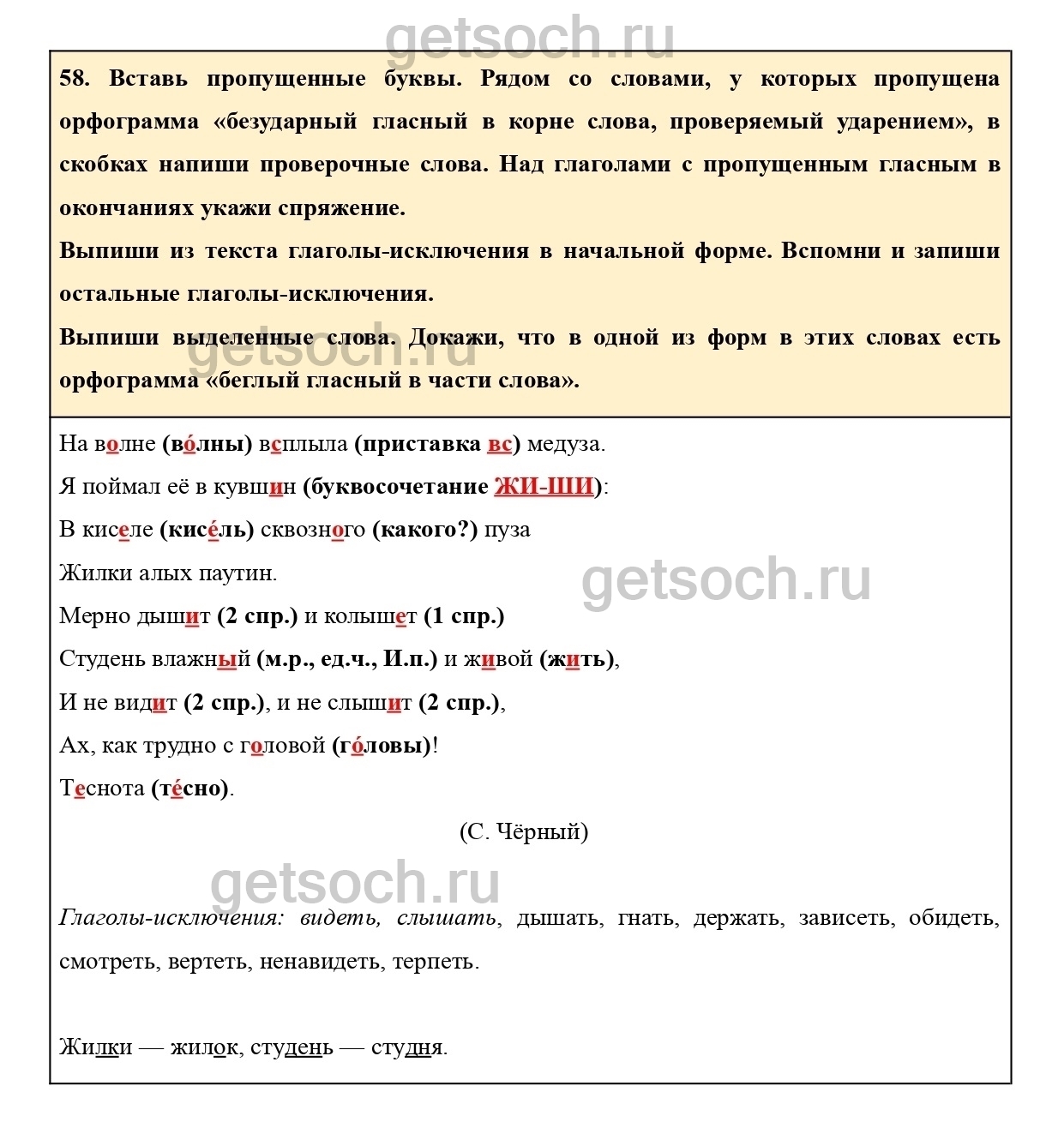 58. Вставь пропущенные буквы. Рядом со словами, у которых пропущена орфограмма «безударный гласный в корне слова, проверяемый ударением», в скобках напиши проверочные слова. Над глаголами с пропущенным гласным в окончаниях укажи спряжение.