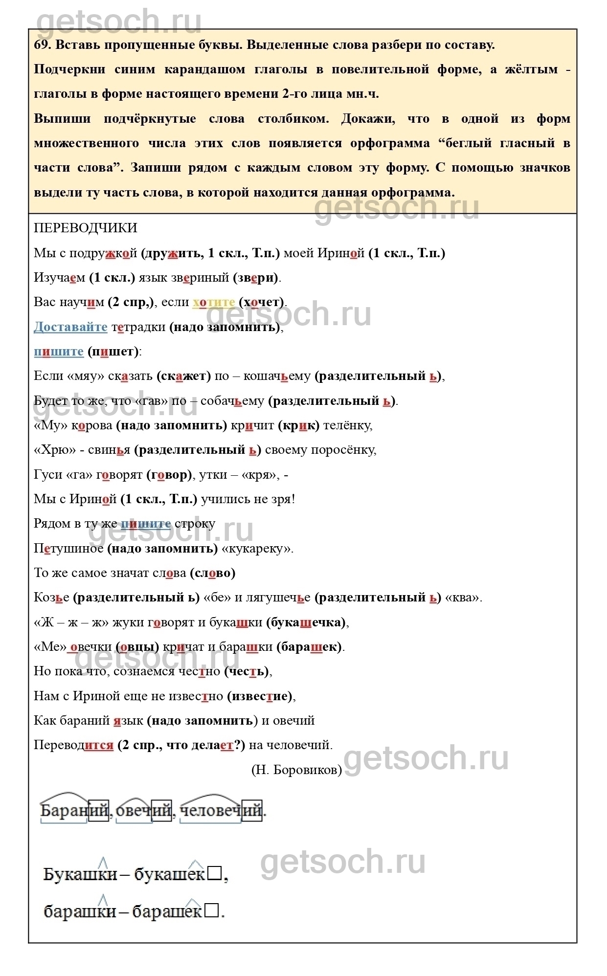 Рассмотрим ответы на Упражнение 69 из тетради для самостоятельной работы по русскому языку для 4 класса Байковой