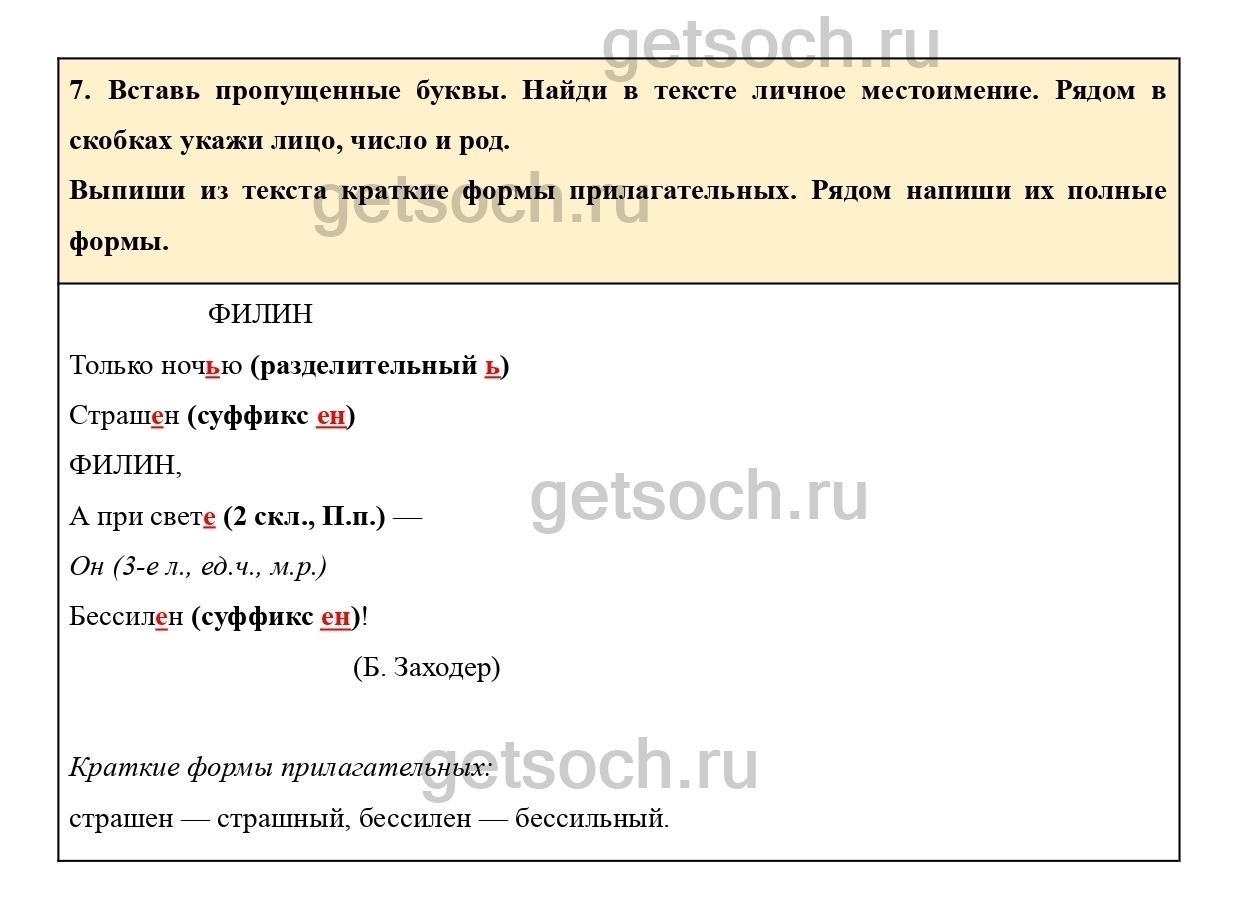 Рассмотрим ответы на Упражнение 7 из тетради для самостоятельной работы по русскому языку для 4 класса Байковой