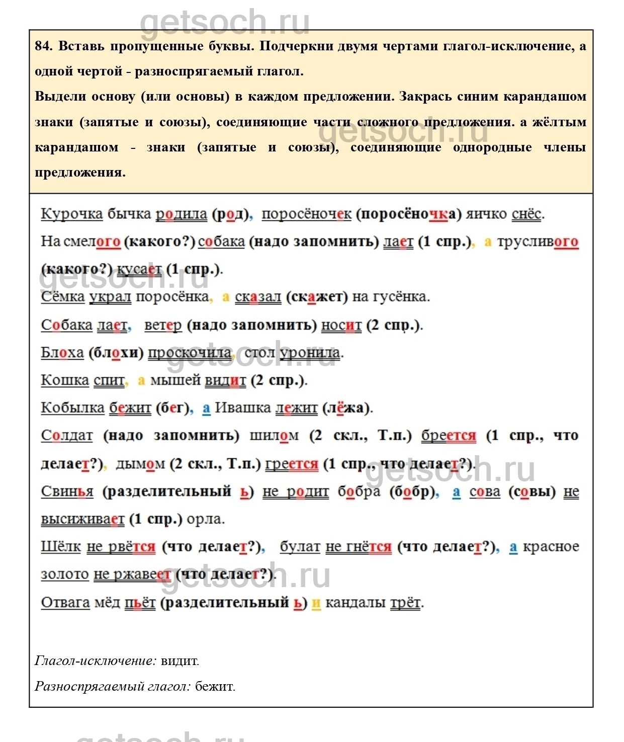 84. Вставь пропущенные буквы. Подчеркни двумя чертами глагол-исключение, а одной чертой – разноспрягаемый глагол.