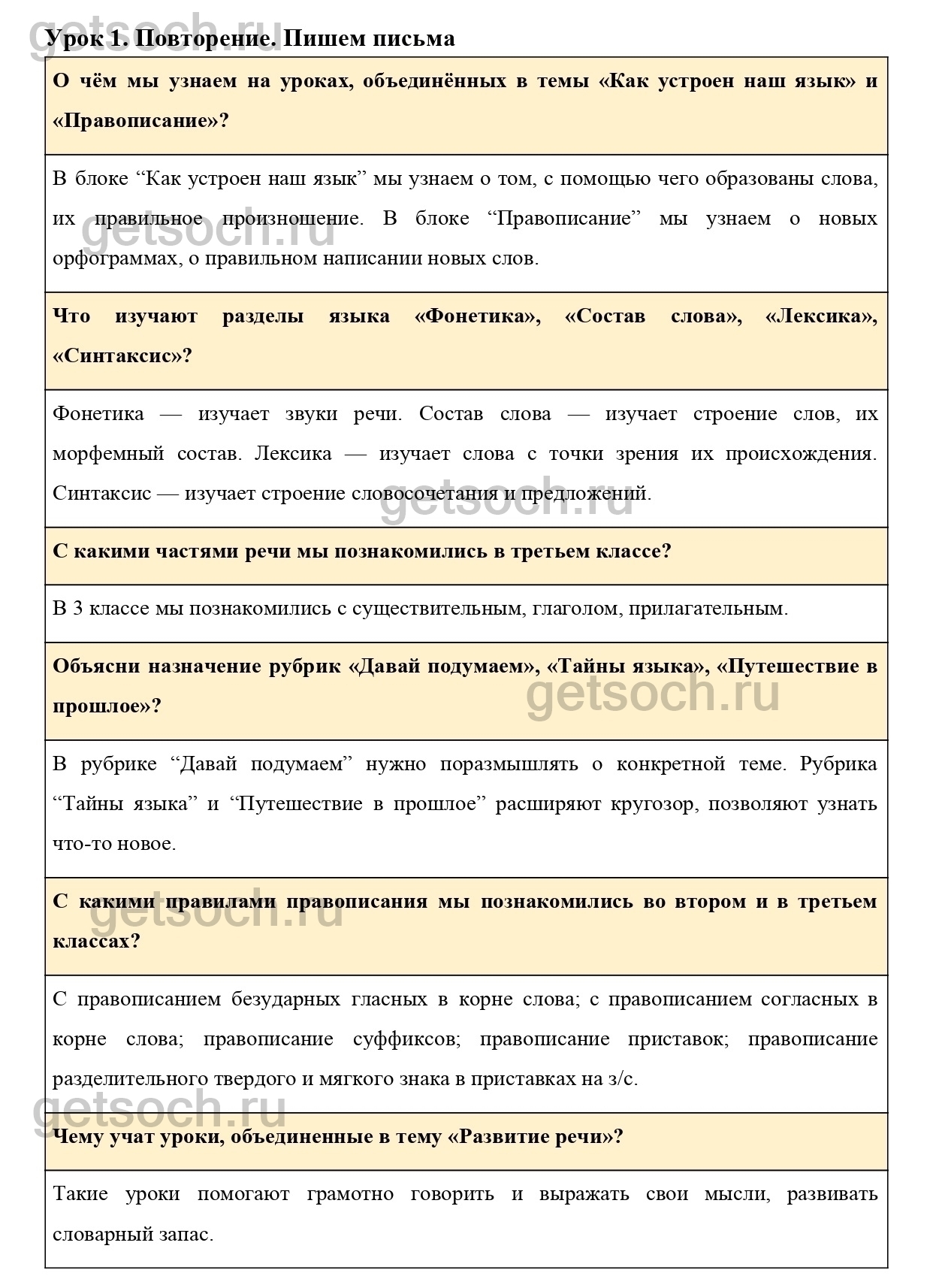 Рассмотрим ответы на Урок 1 из учебника по русскому языку для 4 класса Иванова