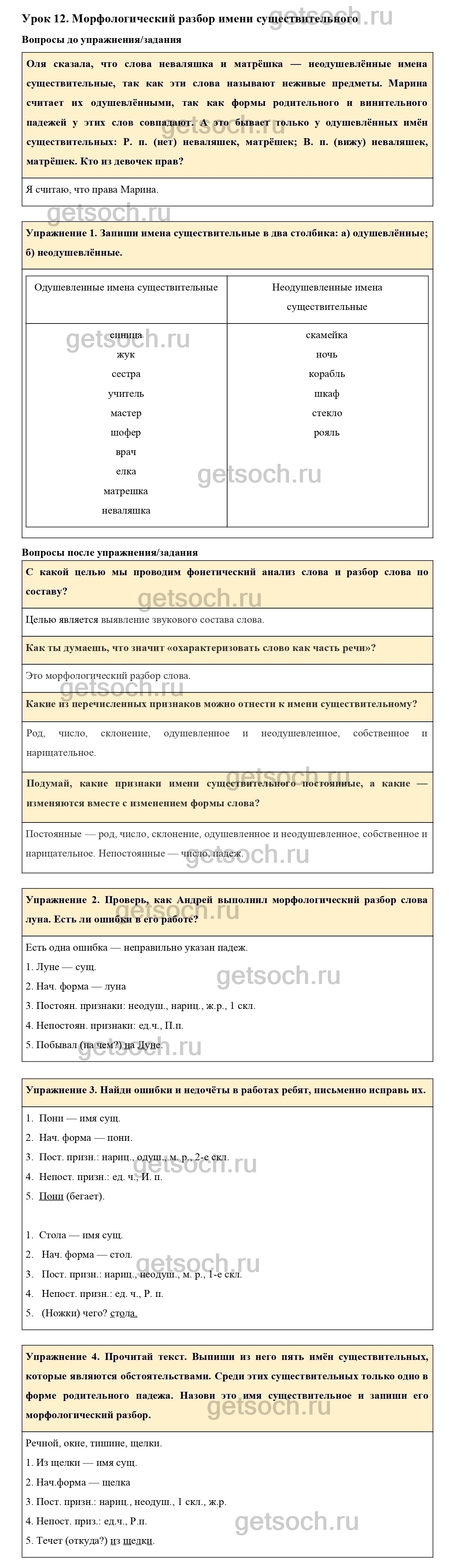 Рассмотрим ответы на Урок 12 из учебника по русскому языку для 4 класса Иванова