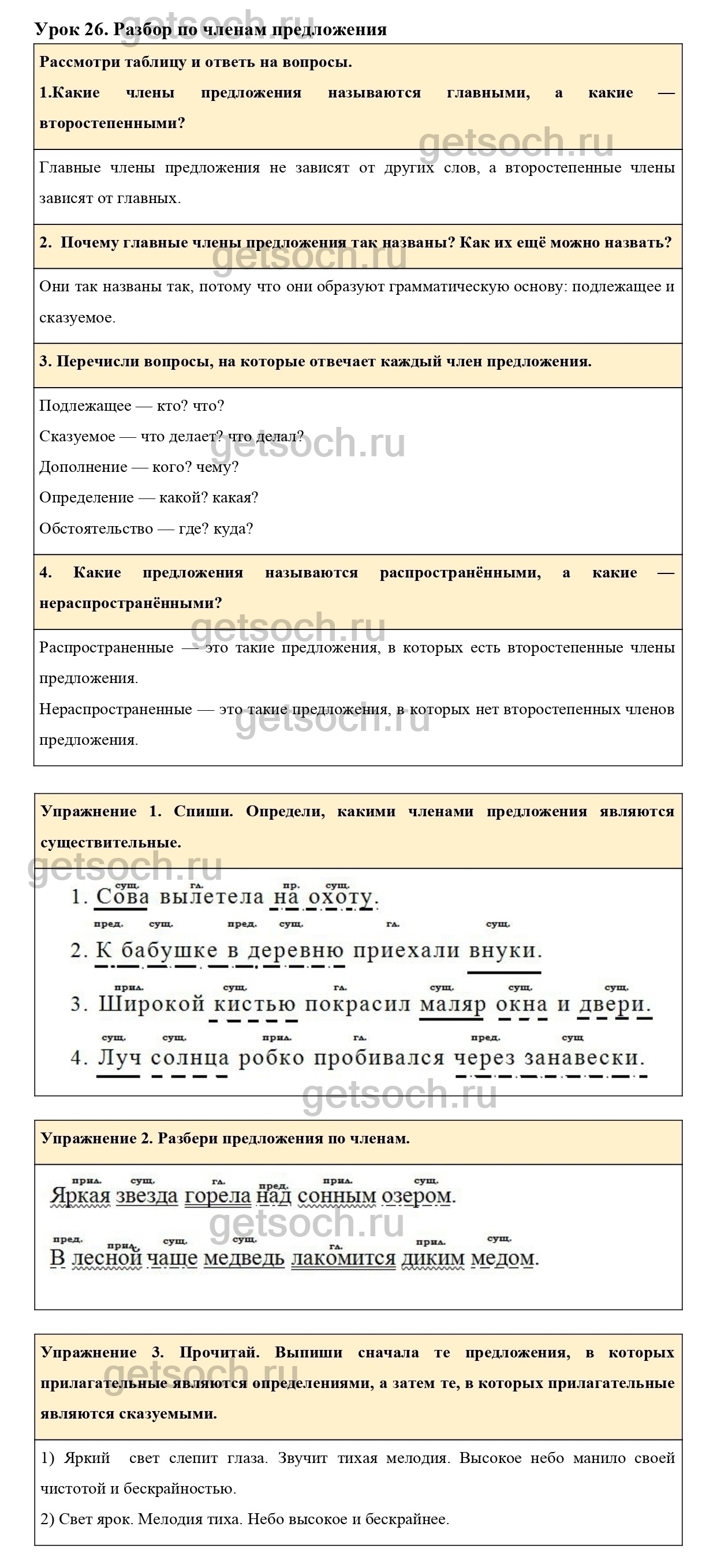 Рассмотрим ответы на Урок 26 из учебника по русскому языку для 4 класса Иванова