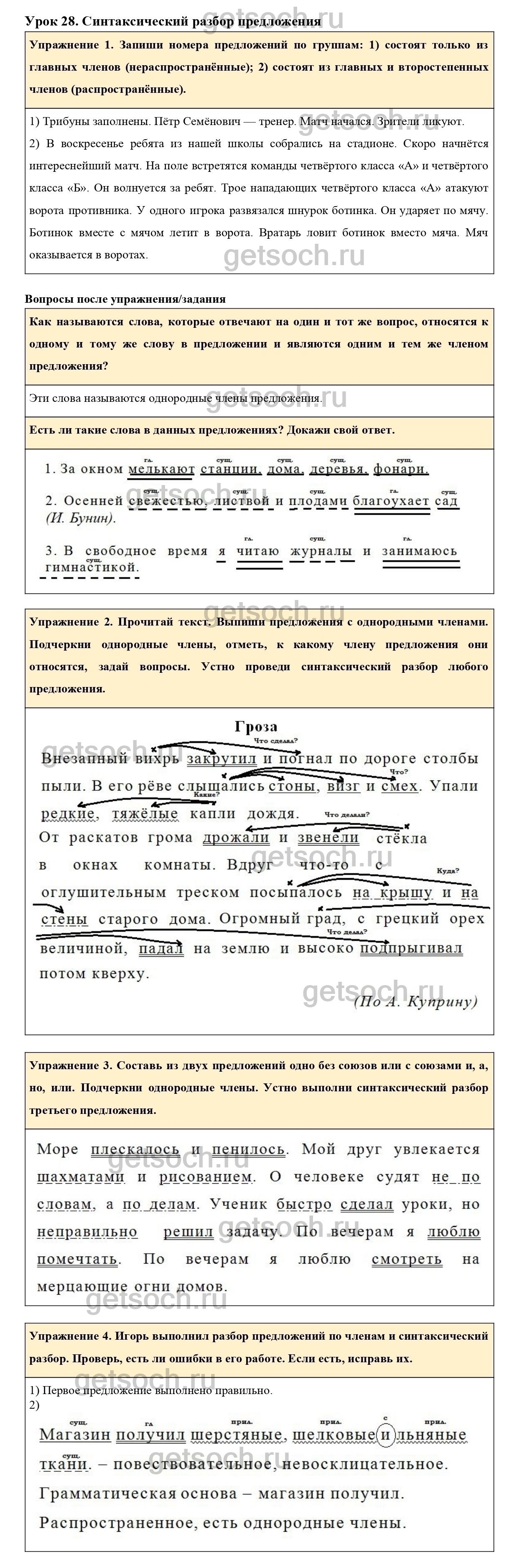 Рассмотрим ответы на Урок 28 из учебника по русскому языку для 4 класса Иванова