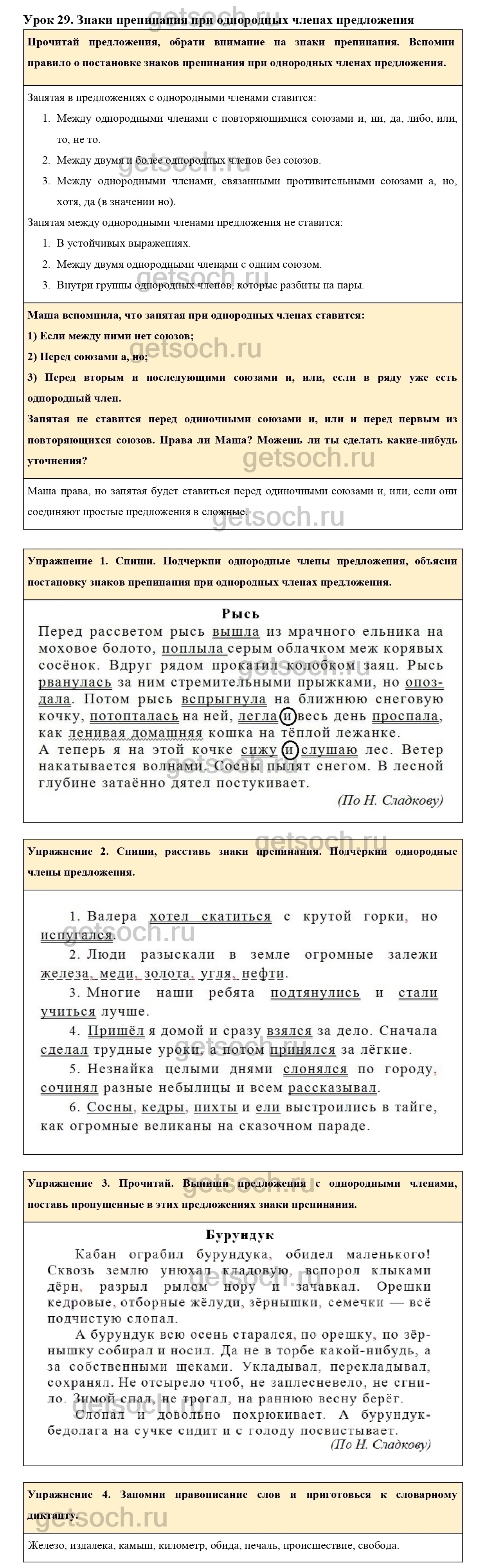 Рассмотрим ответы на Урок 29 из учебника по русскому языку для 4 класса Иванова