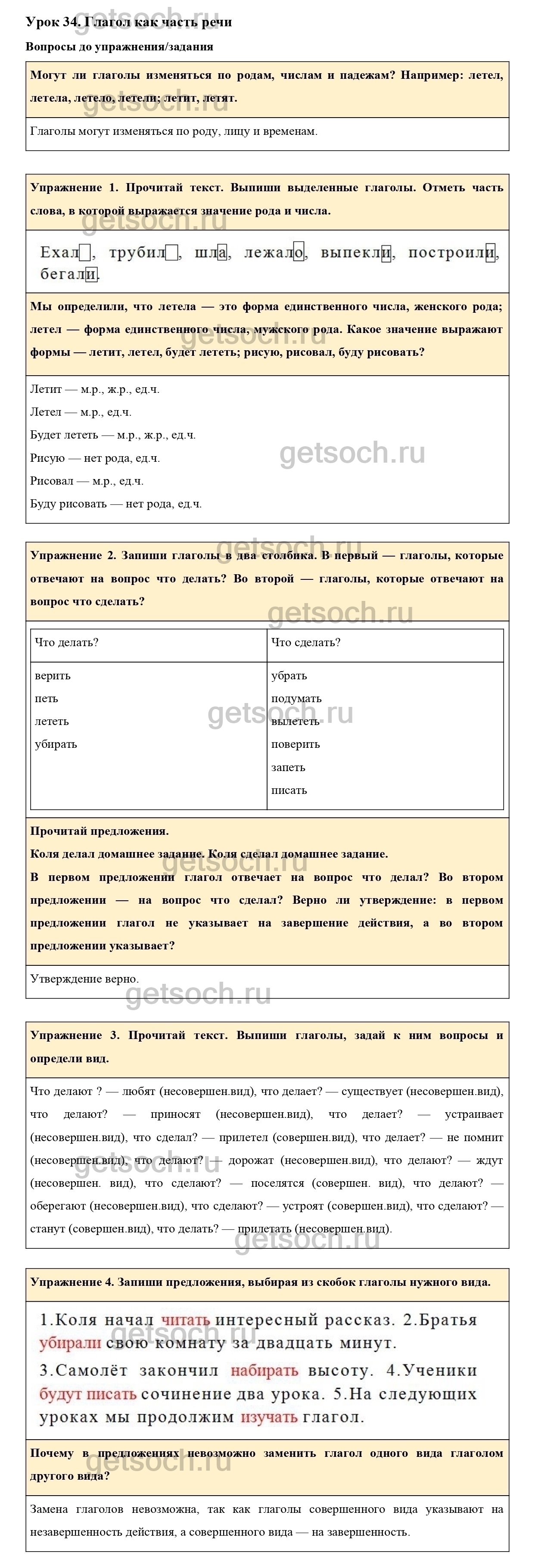 Рассмотрим ответы на Урок 34 из учебника по русскому языку для 4 класса Иванова