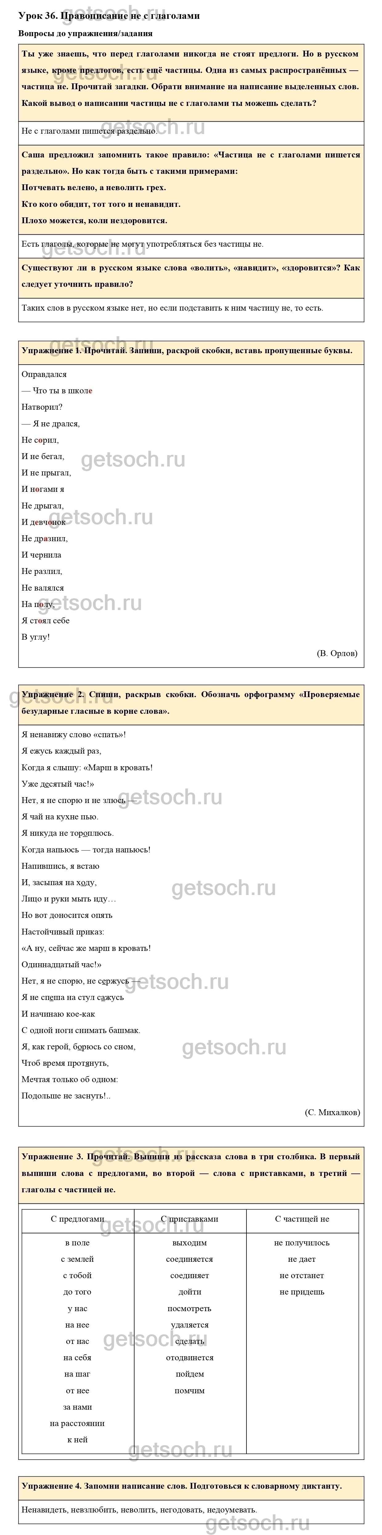 Рассмотрим ответы на Урок 36 из учебника по русскому языку для 4 класса Иванова
