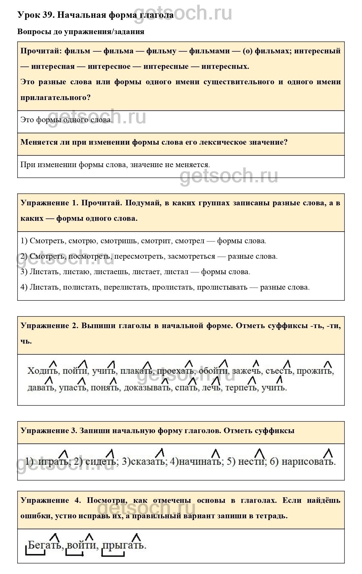 Рассмотрим ответы на Урок 39 из учебника по русскому языку для 4 класса Иванова