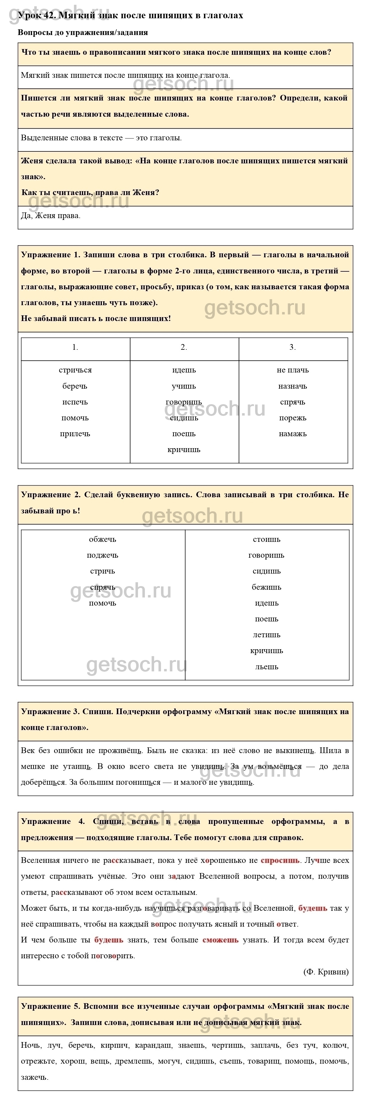 Упражнение 3. Спиши. Подчеркни орфограмму «Мягкий знак после шипящих на конце глаголов».