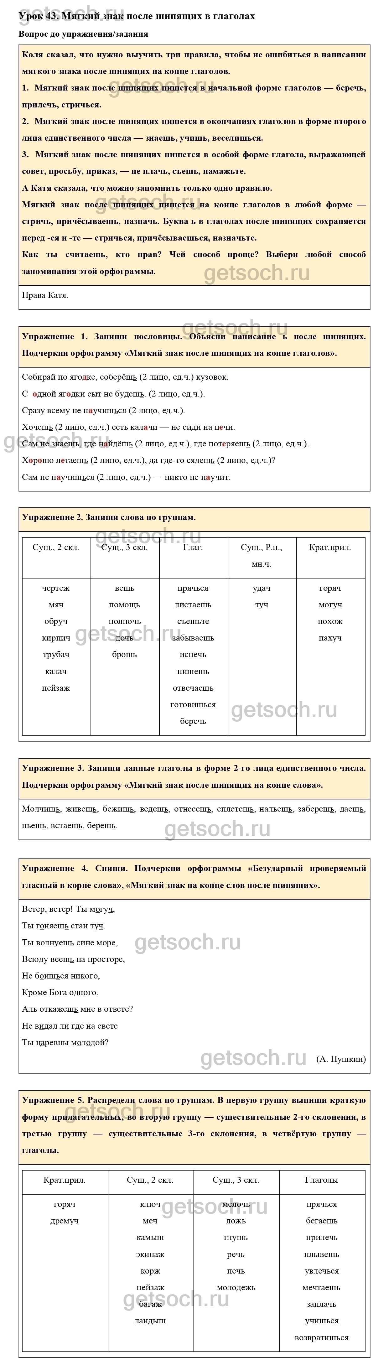 Рассмотрим ответы на Урок 43 из учебника по русскому языку для 4 класса Иванова