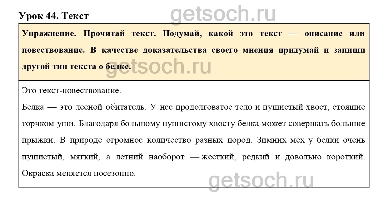 Упражнение. Прочитай текст. Подумай, какой это текст — описание или повествование. В качестве доказательства своего мнения придумай и запиши другой тип текста о белке.
