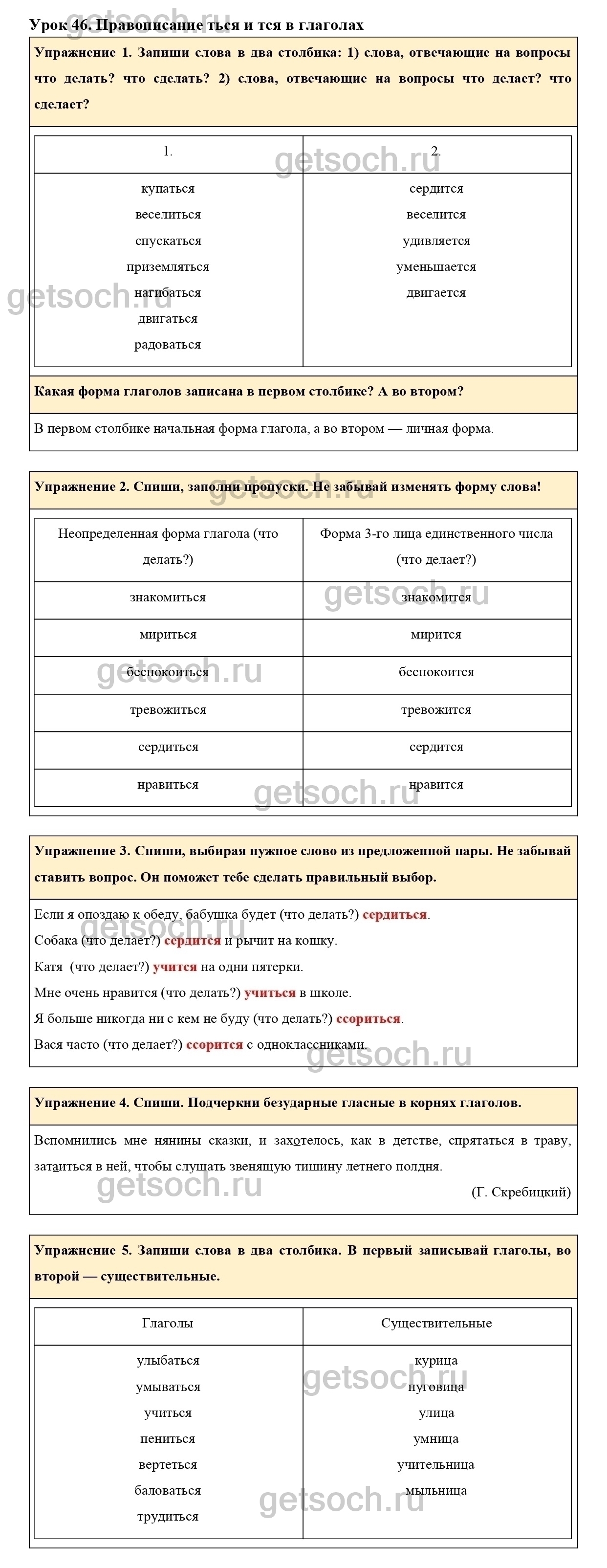 Рассмотрим ответы на Урок 46 из учебника по русскому языку для 4 класса Иванова