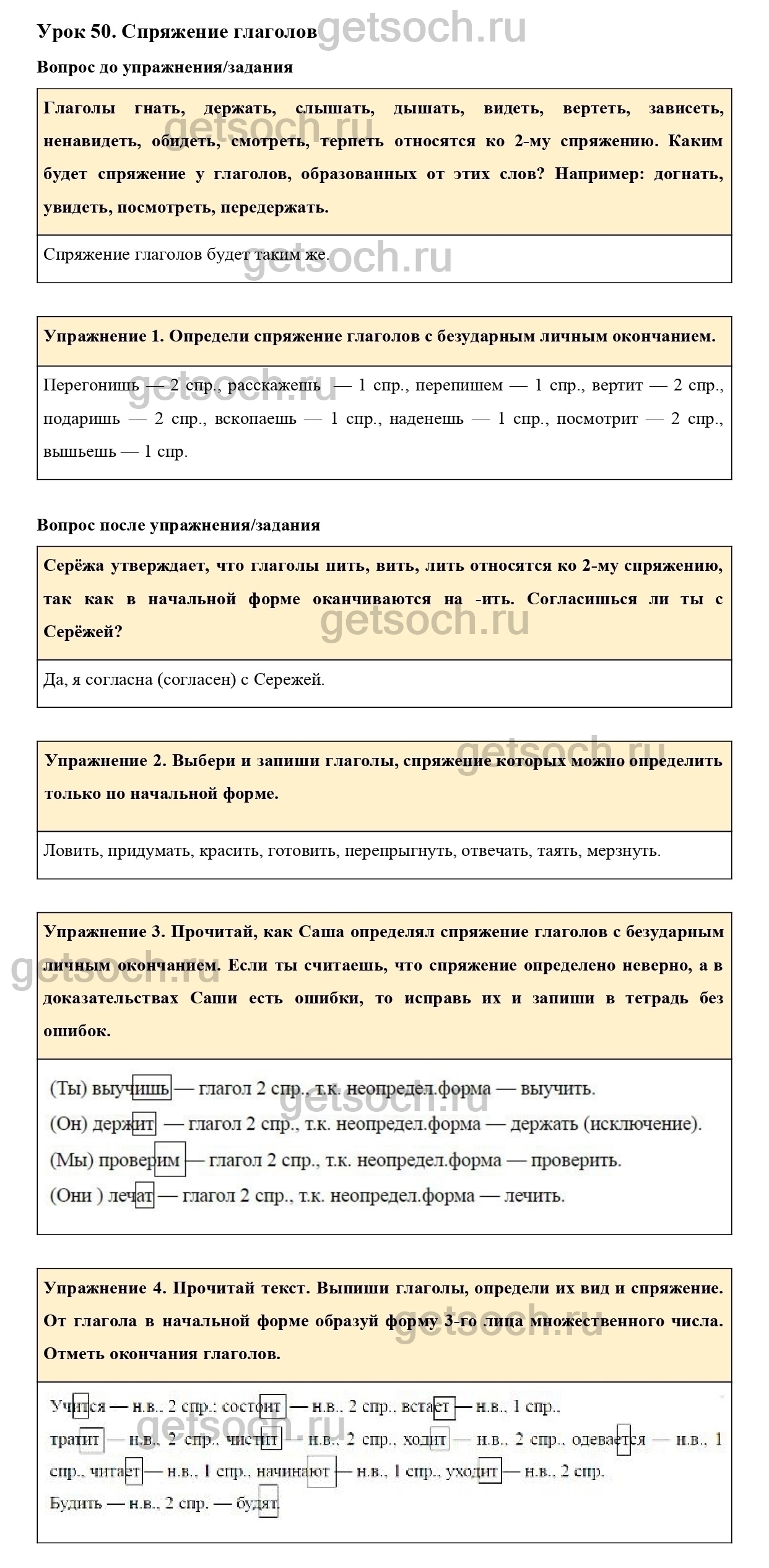 Рассмотрим ответы на Урок 50 из учебника по русскому языку для 4 класса Иванова
