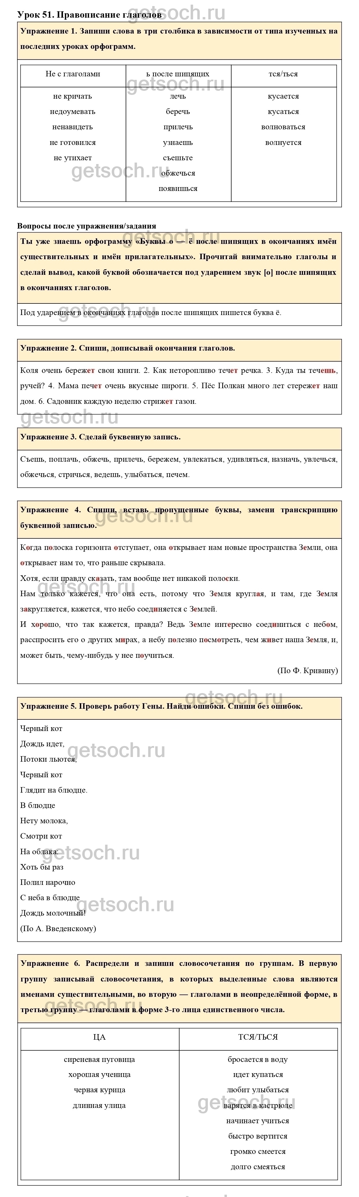 Рассмотрим ответы на Урок 51 из учебника по русскому языку для 4 класса Иванова
