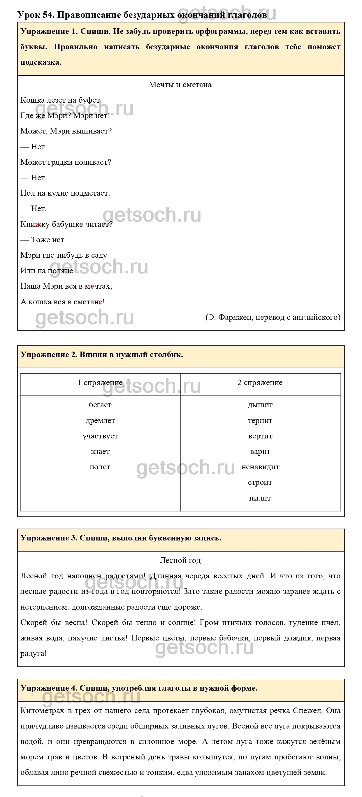 Рассмотрим ответы на Урок 54 из учебника по русскому языку для 4 класса Иванова