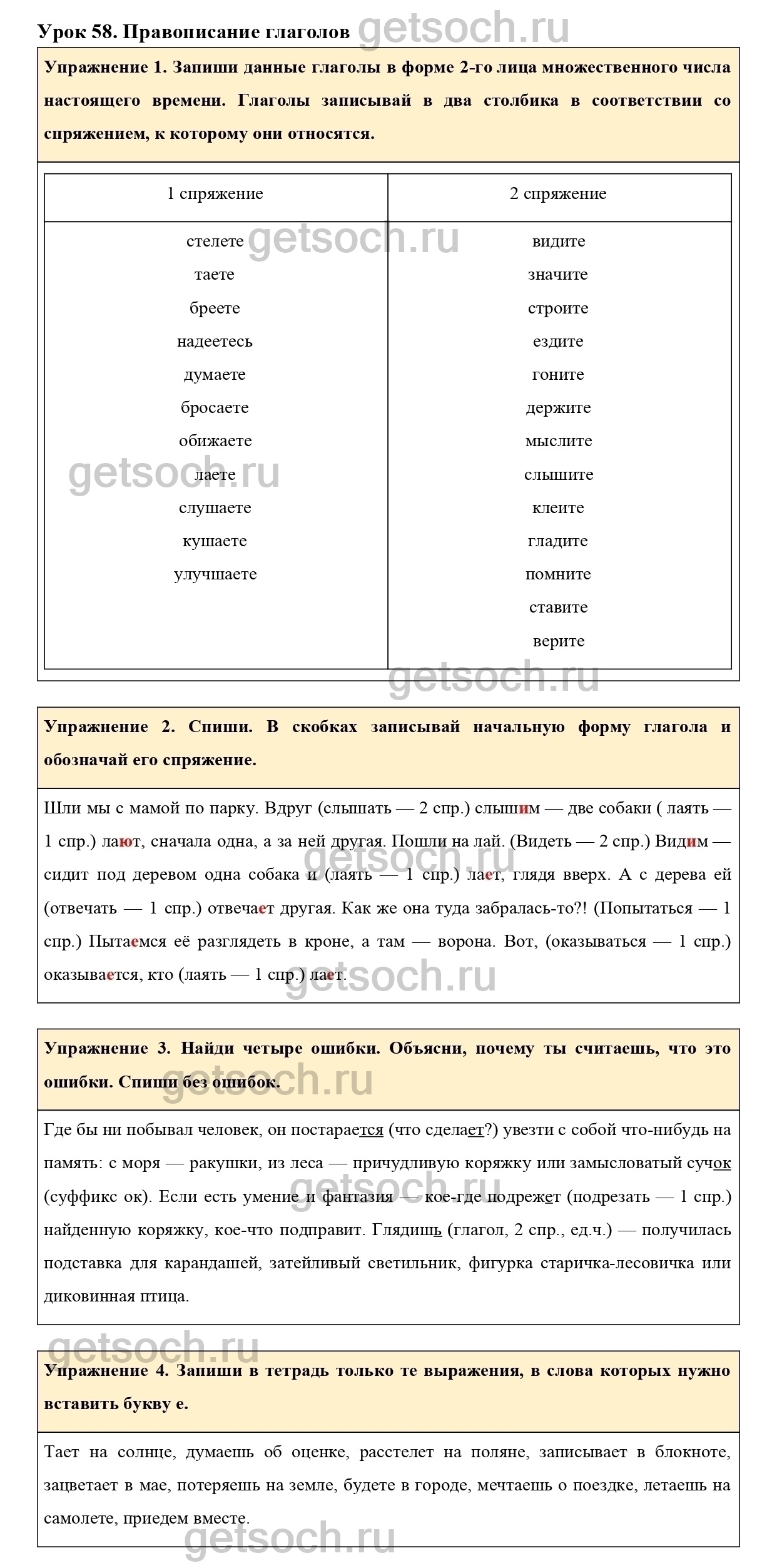 Рассмотрим ответы на Урок 58 из учебника по русскому языку для 4 класса Иванова