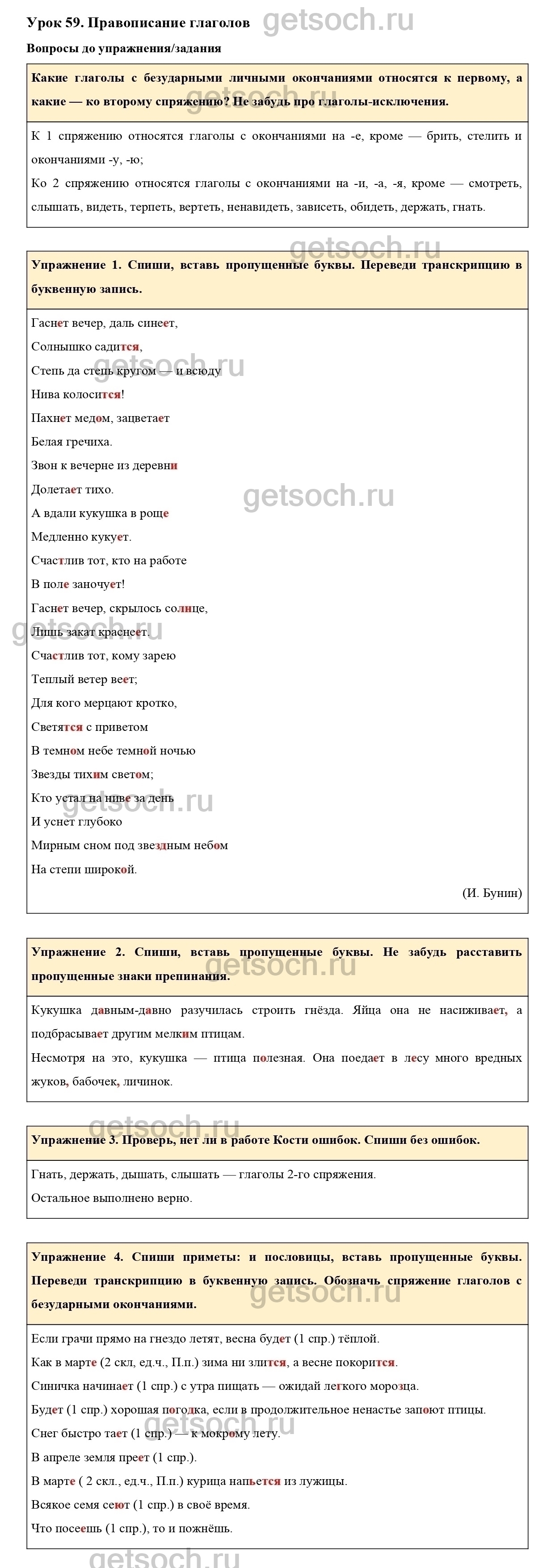 Рассмотрим ответы на Урок 59 из учебника по русскому языку для 4 класса Иванова