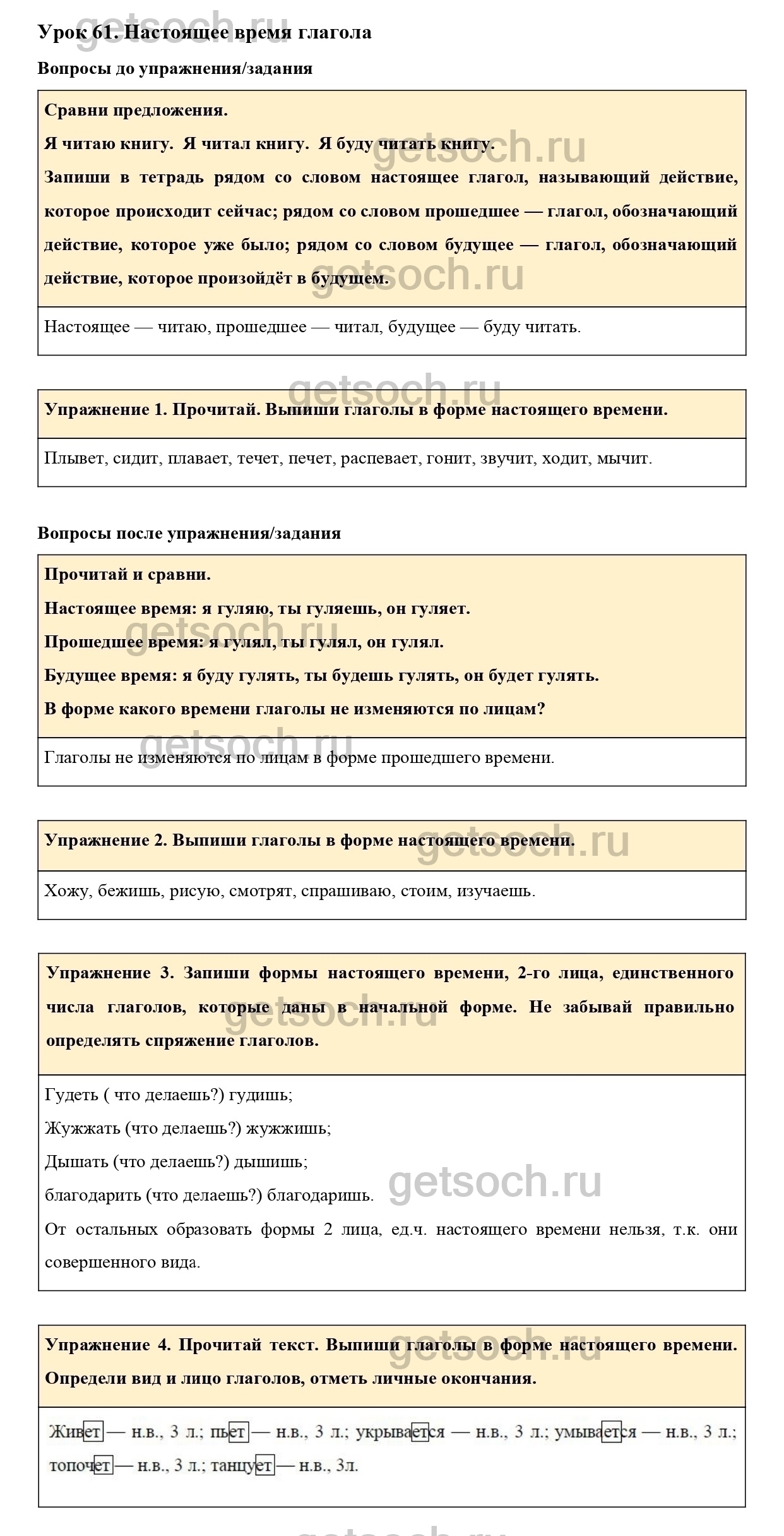 Упражнение 1. Прочитай. Выпиши глаголы в форме настоящего времени.