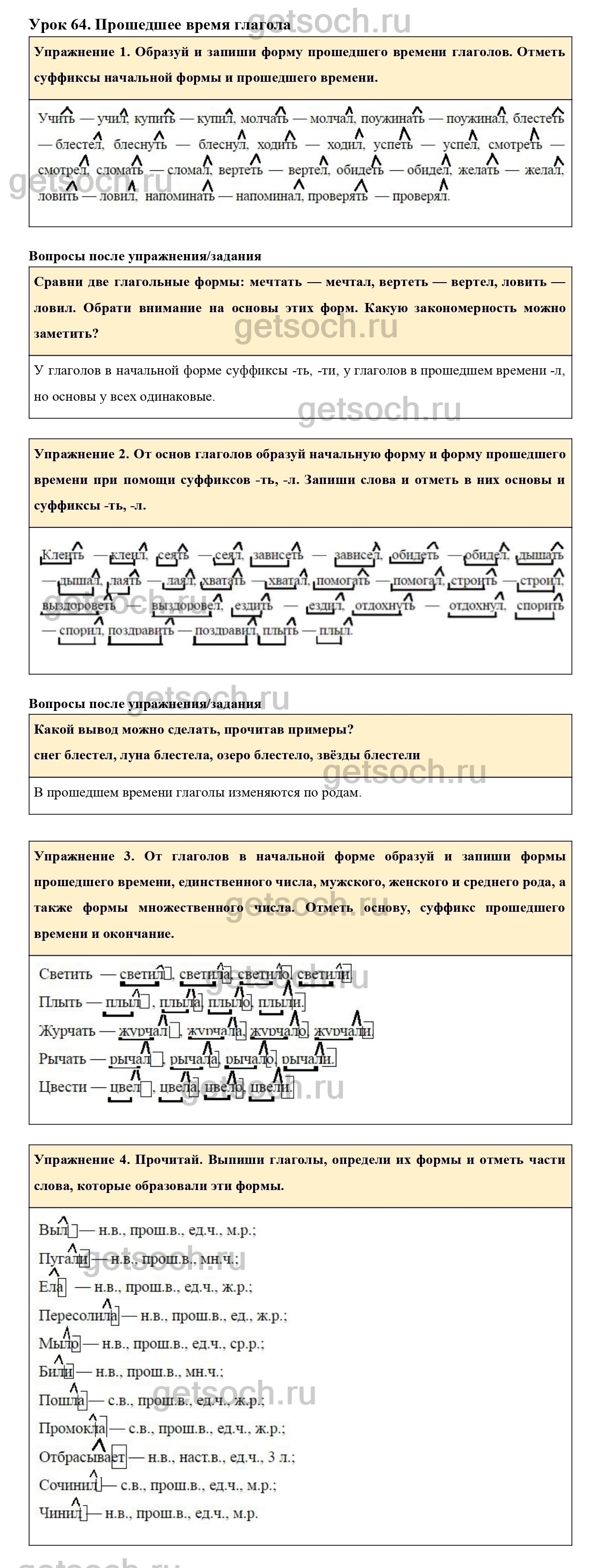 Рассмотрим ответы на Урок 64 из учебника по русскому языку для 4 класса Иванова
