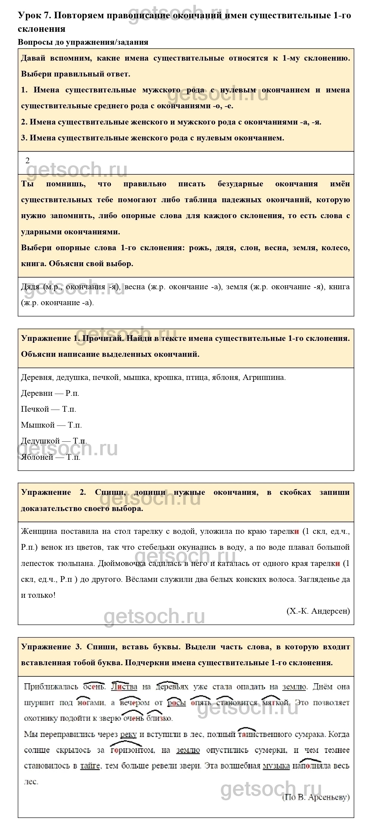 Рассмотрим ответы на Урок 7 из учебника по русскому языку для 4 класса Иванова