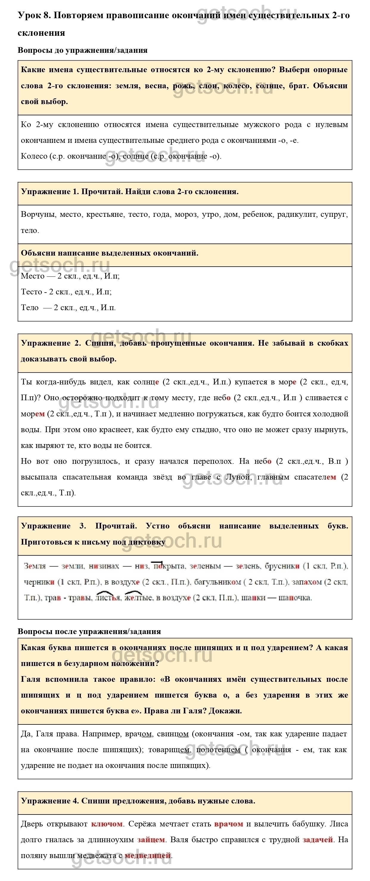 Рассмотрим ответы на Урок 8 из учебника по русскому языку для 4 класса Иванова