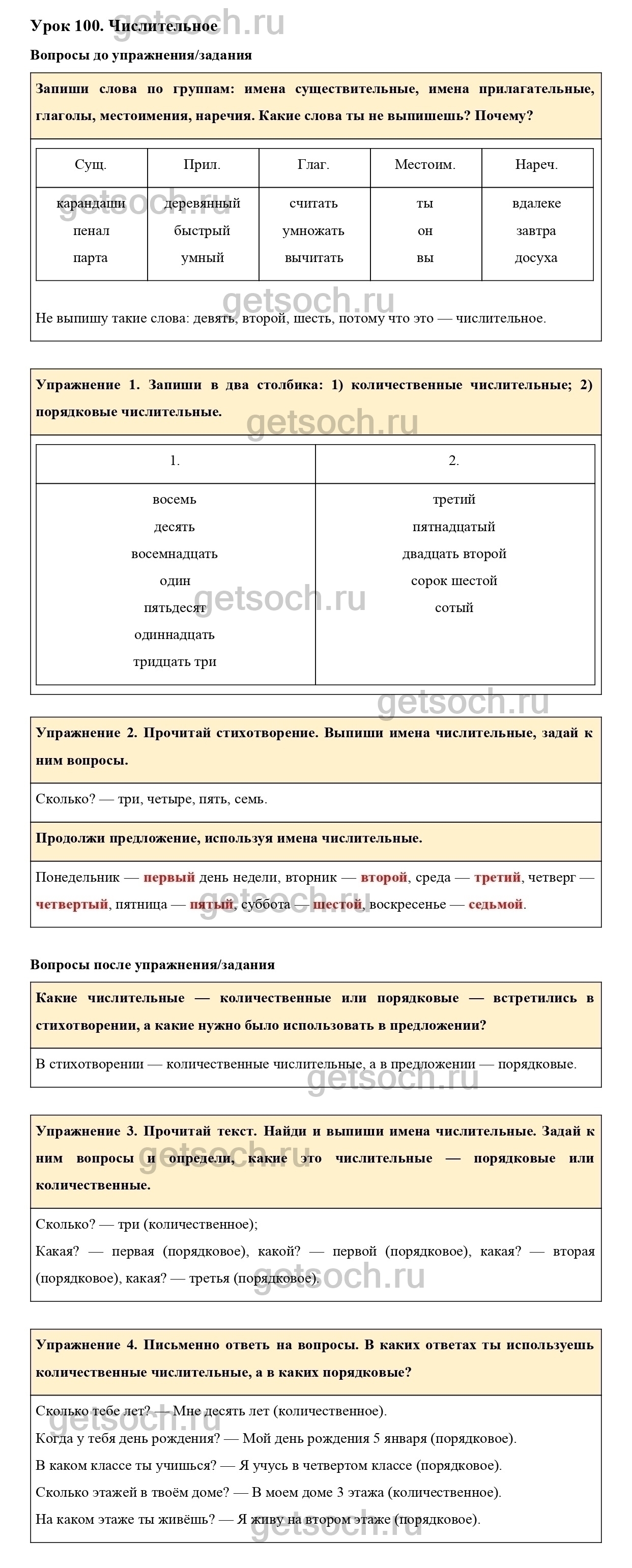 Рассмотрим ответы на Урок 100 из учебника по русскому языку для 4 класса Иванова