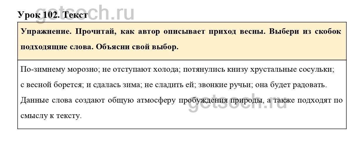 Рассмотрим ответы на Урок 102 из учебника по русскому языку для 4 класса Иванова