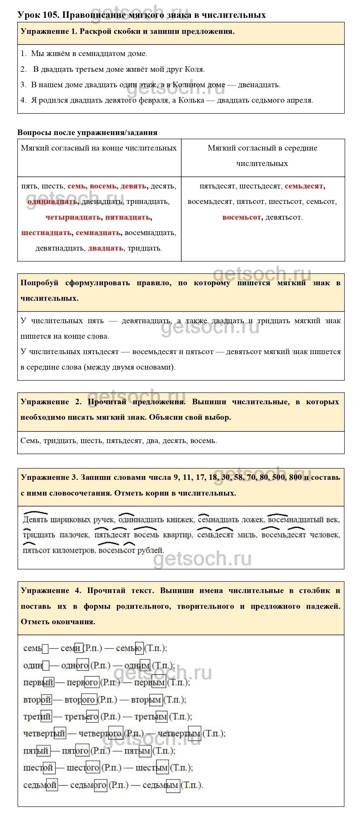 Рассмотрим ответы на Урок 105 из учебника по русскому языку для 4 класса Иванова
