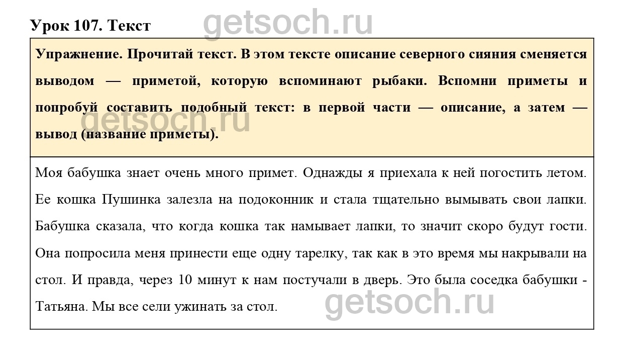Рассмотрим ответы на Урок 107 из учебника по русскому языку для 4 класса Иванова