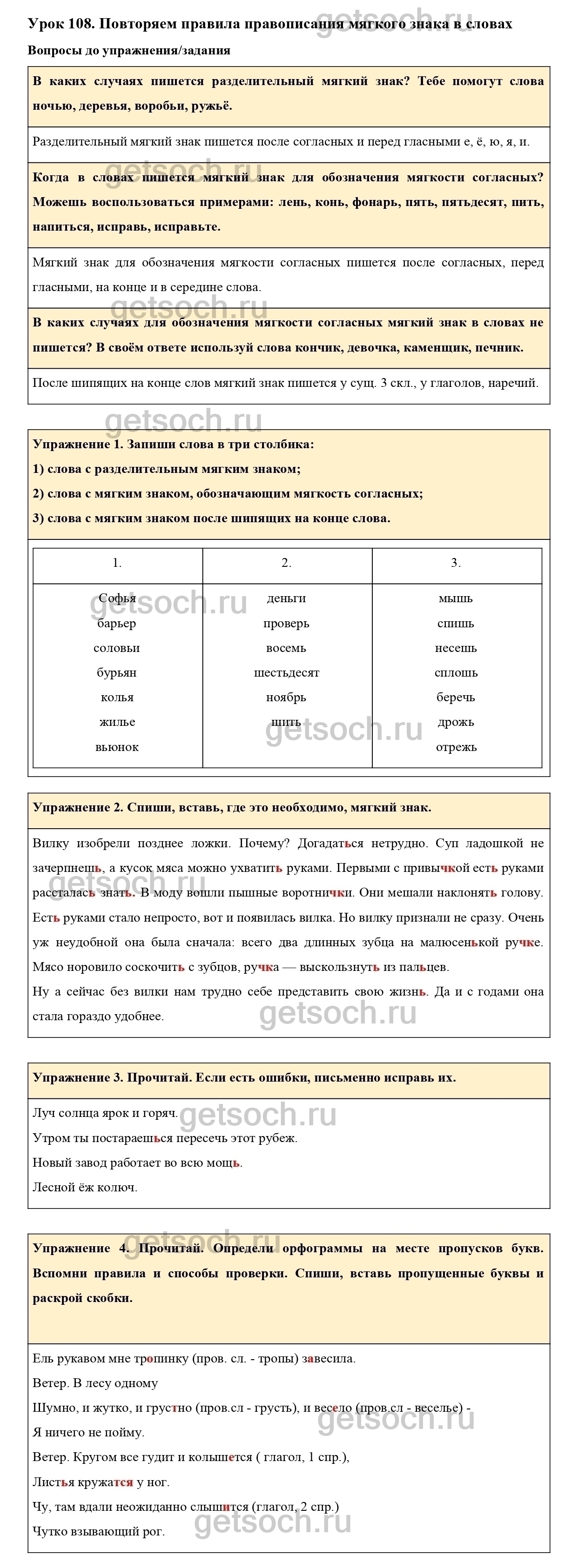 Рассмотрим ответы на Урок 108 из учебника по русскому языку для 4 класса Иванова