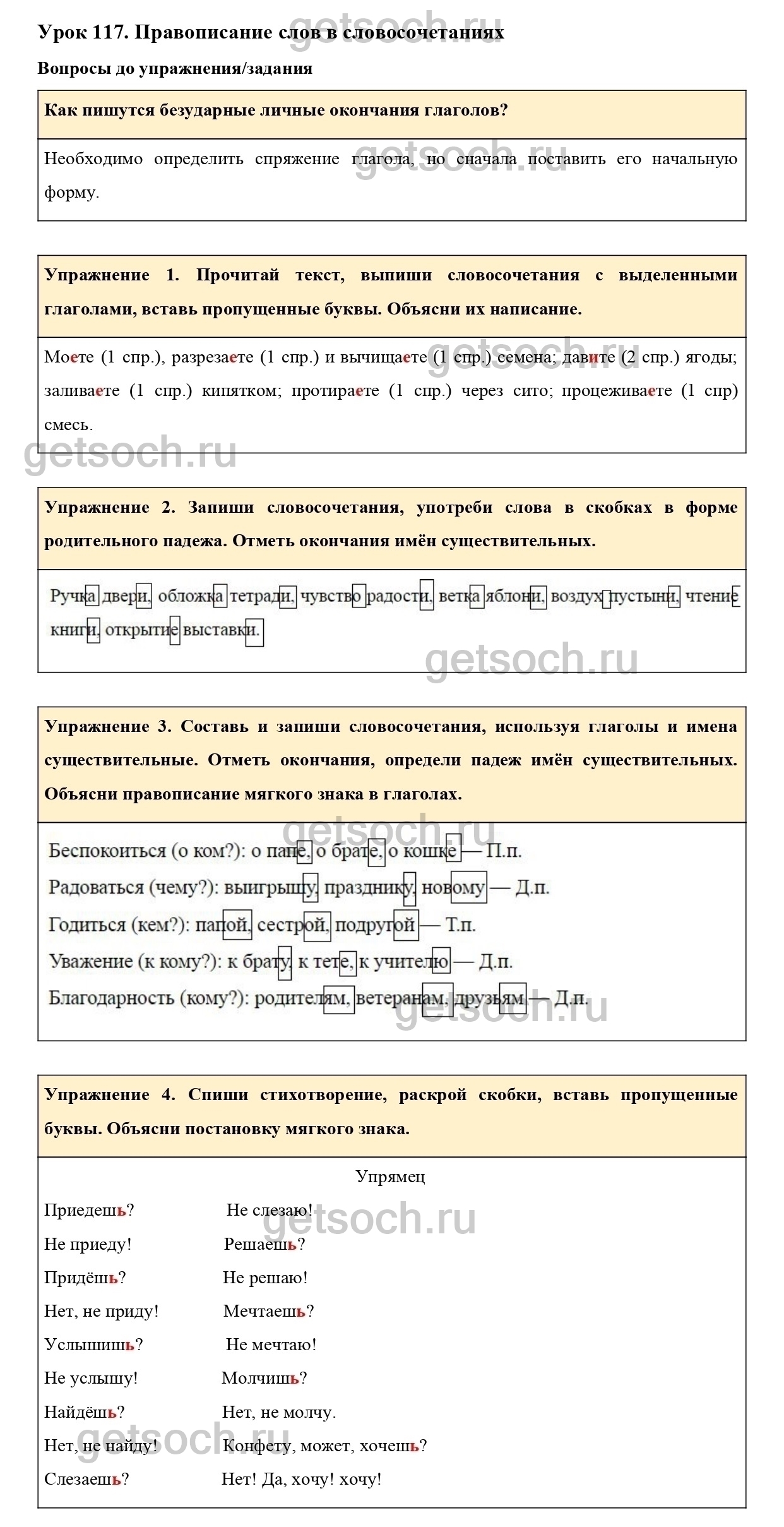 Рассмотрим ответы на Урок 117 из учебника по русскому языку для 4 класса Иванова