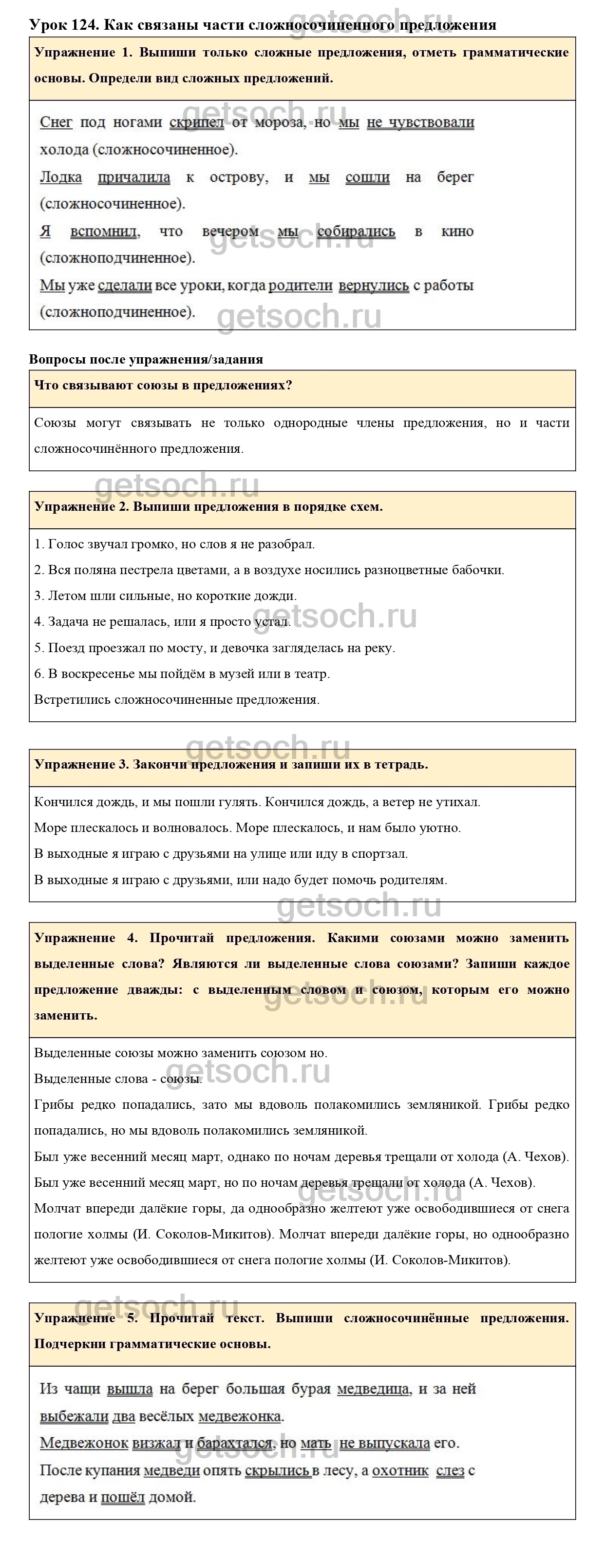 Рассмотрим ответы на Урок 124 из учебника по русскому языку для 4 класса Иванова