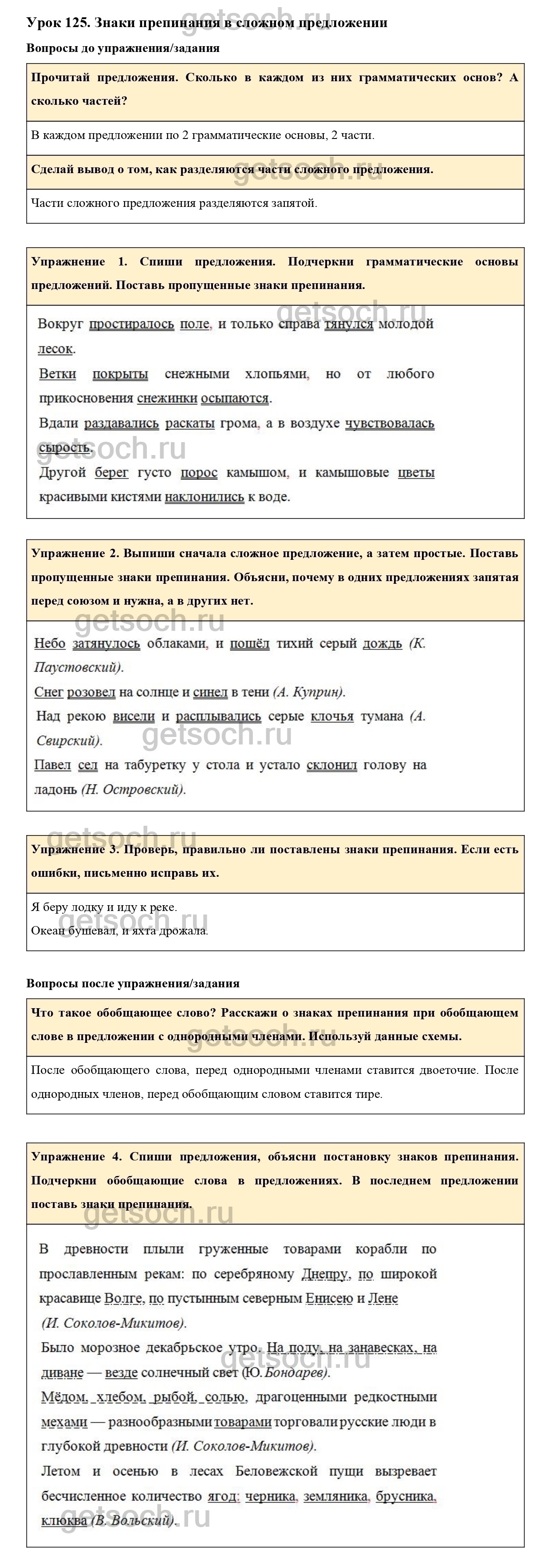 Рассмотрим ответы на Урок 125 из учебника по русскому языку для 4 класса Иванова