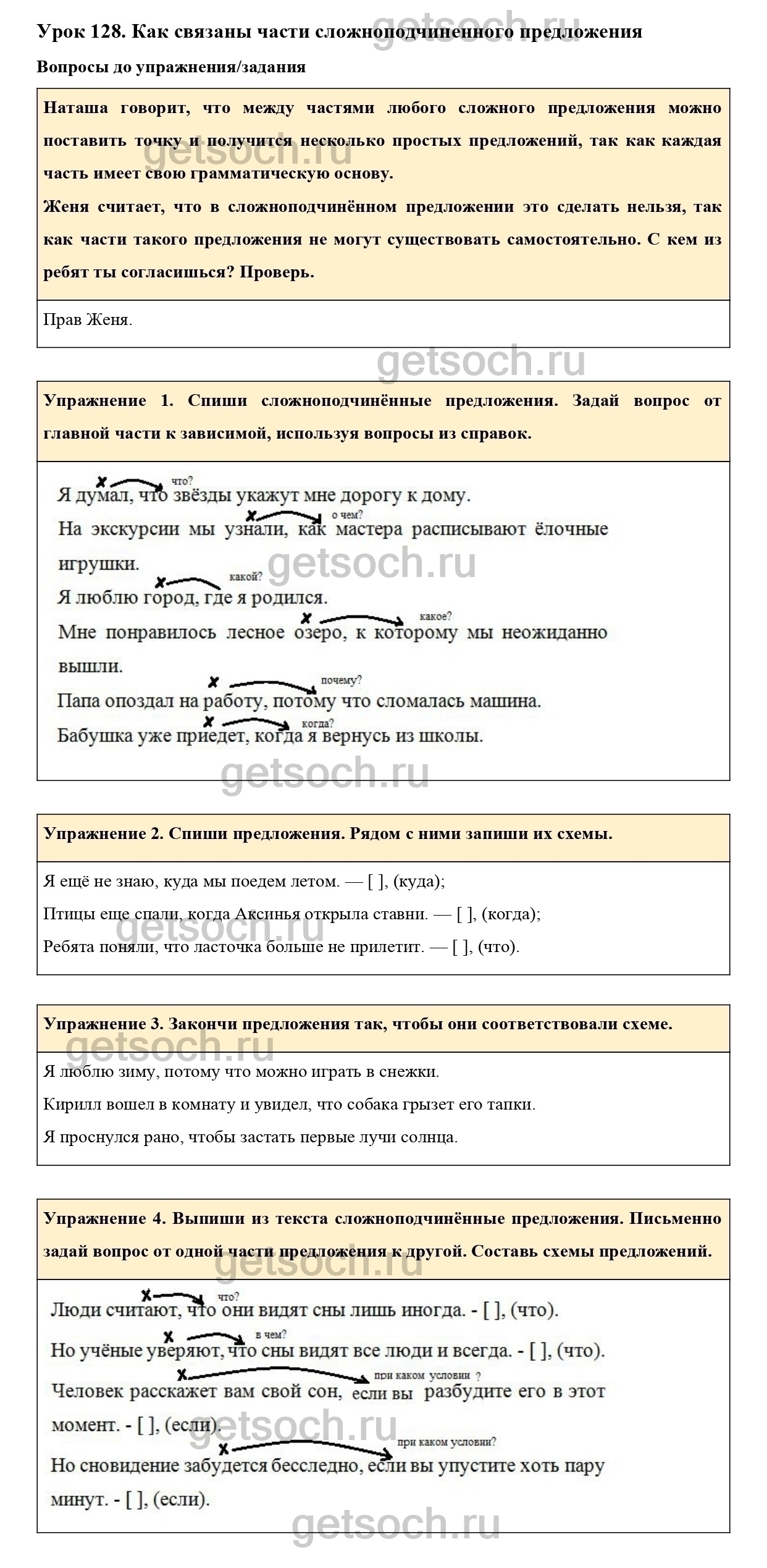 Рассмотрим ответы на Урок 128 из учебника по русскому языку для 4 класса Иванова