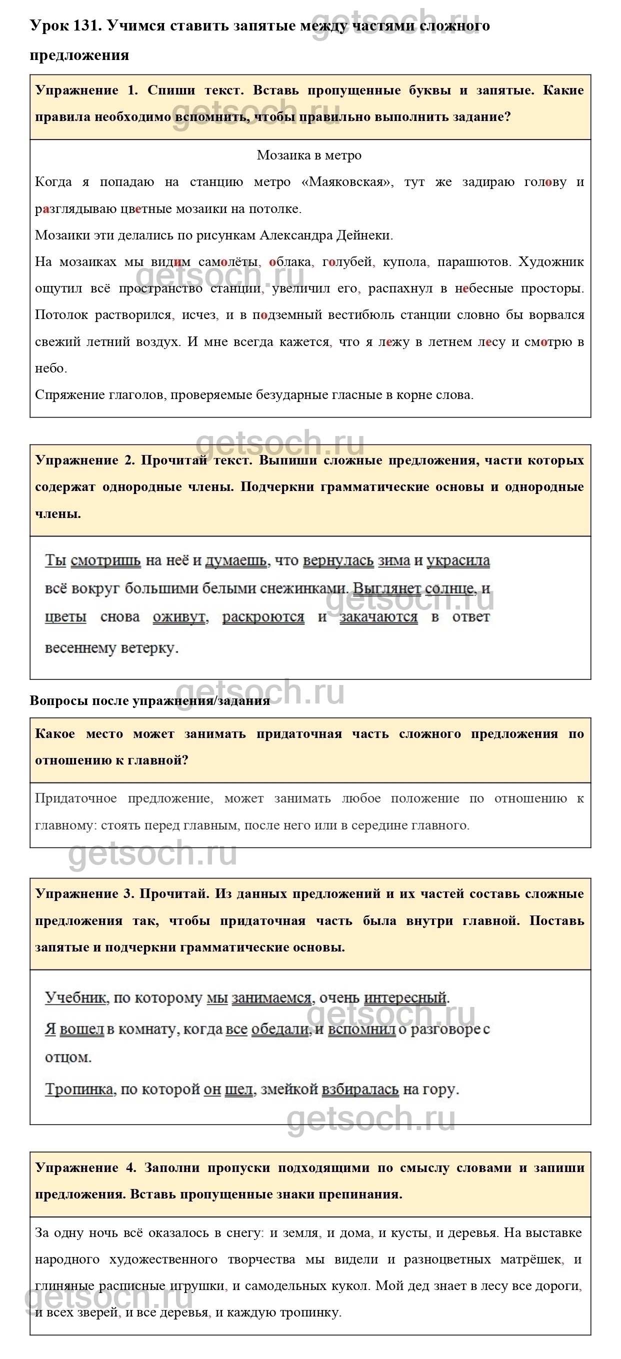 Рассмотрим ответы на Урок 131 из учебника по русскому языку для 4 класса Иванова