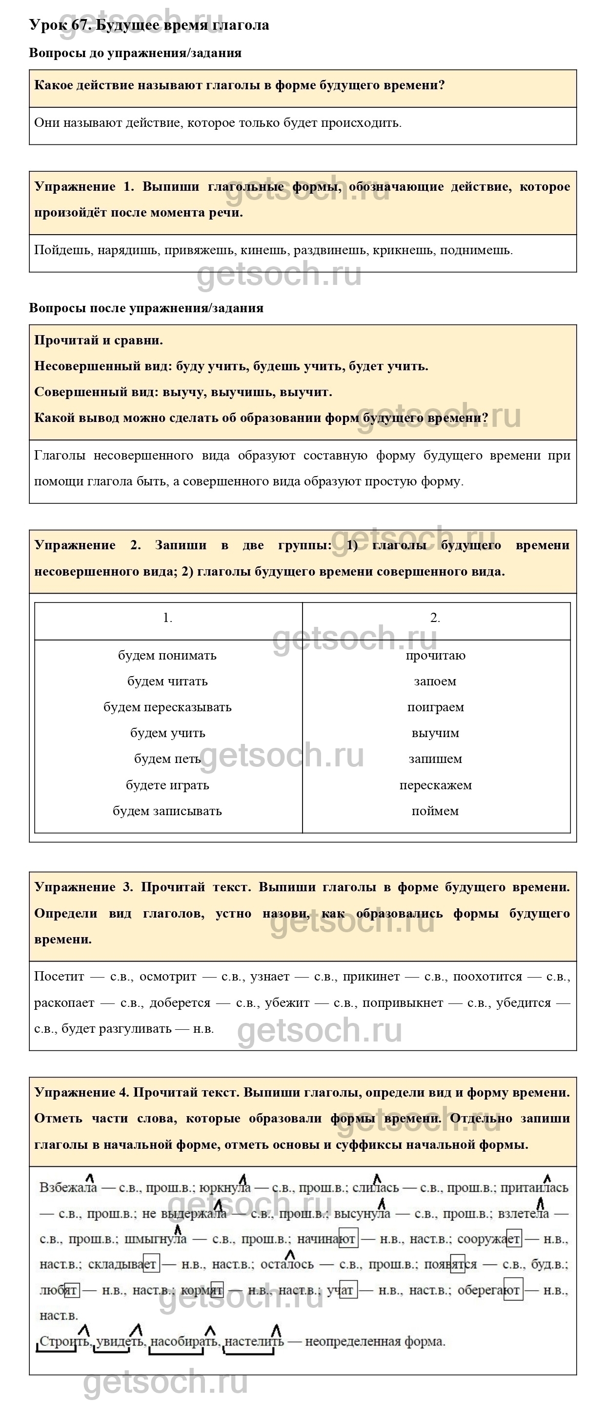 Рассмотрим ответы на Урок 67 из учебника по русскому языку для 4 класса Иванова