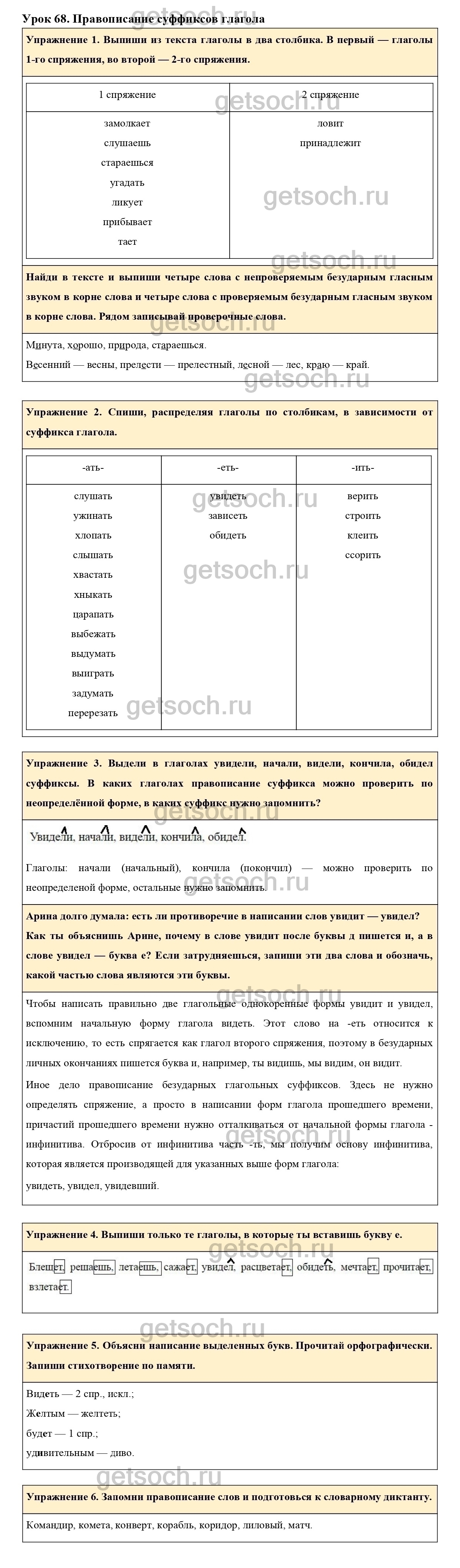 Рассмотрим ответы на Урок 68 из учебника по русскому языку для 4 класса Иванова