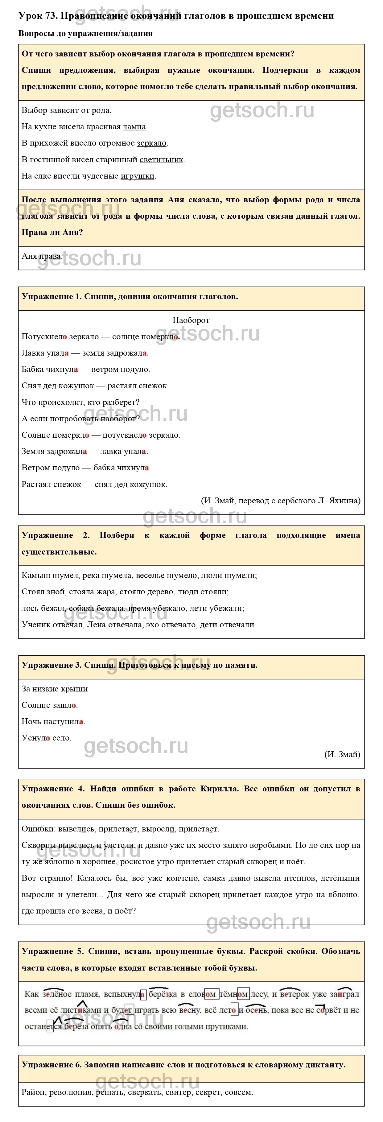 Рассмотрим ответы на Урок 73 из учебника по русскому языку для 4 класса Иванова