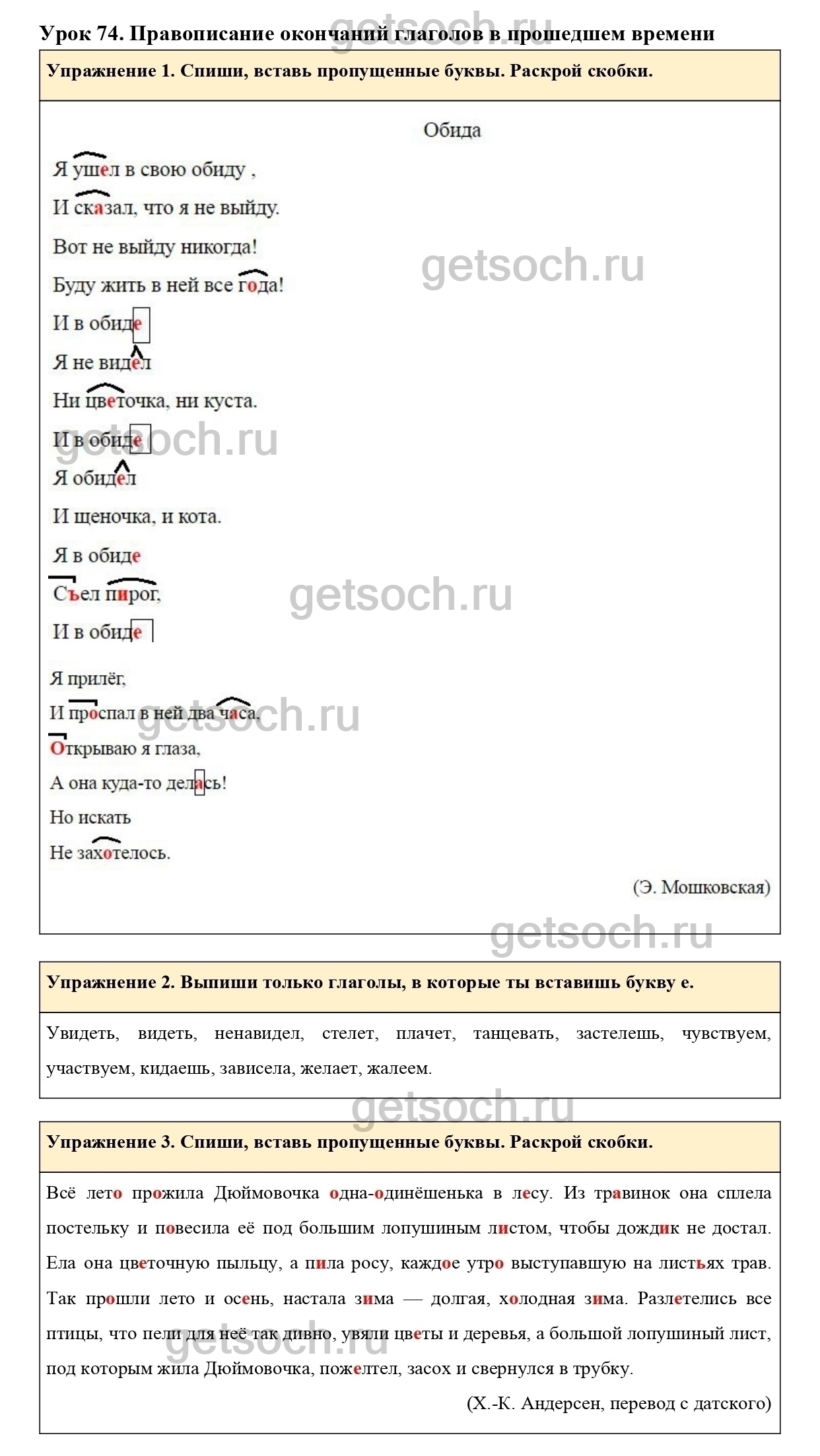 Рассмотрим ответы на Урок 74 из учебника по русскому языку для 4 класса Иванова