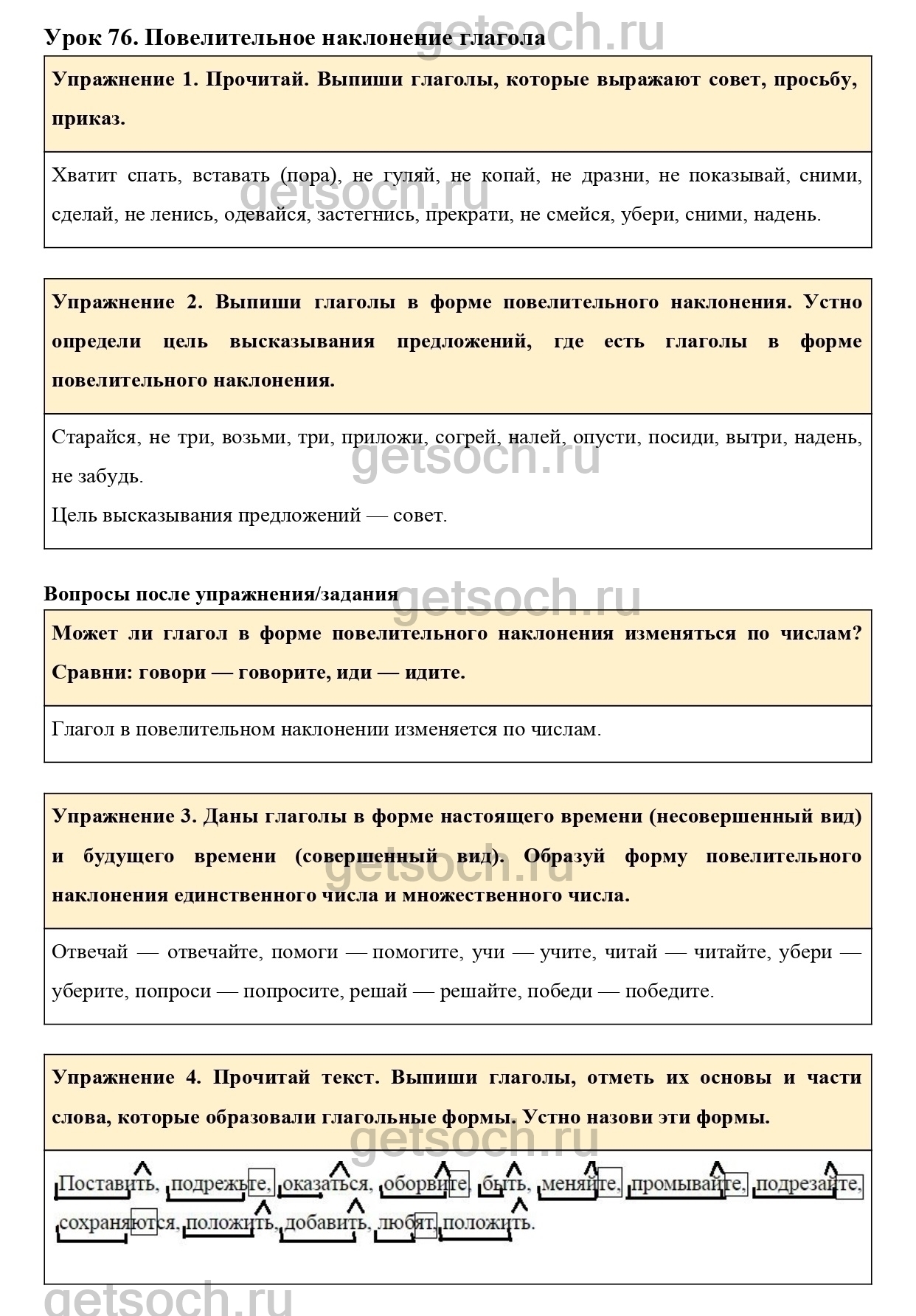Рассмотрим ответы на Урок 76 из учебника по русскому языку для 4 класса Иванова