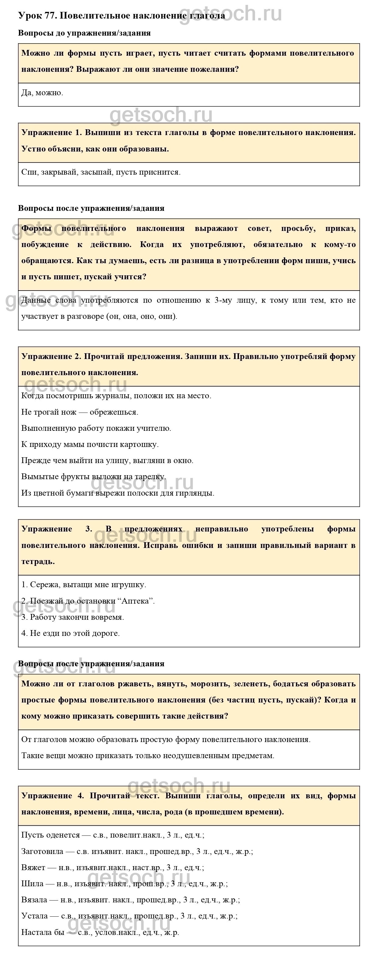 Рассмотрим ответы на Урок 77 из учебника по русскому языку для 4 класса Иванова
