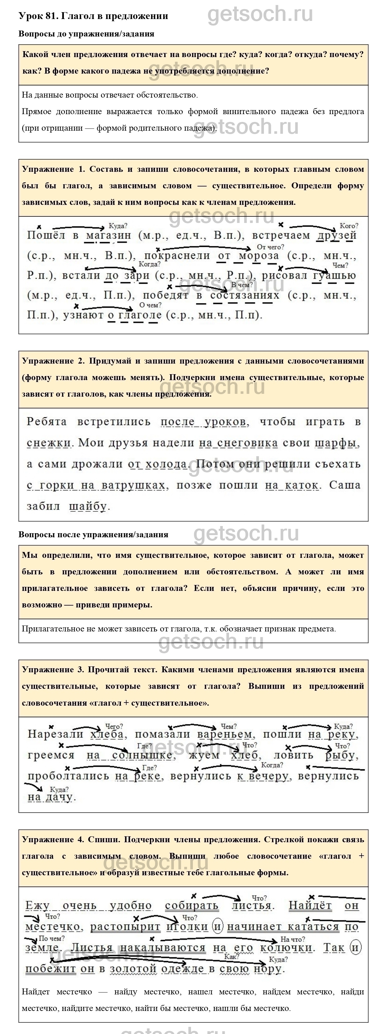 Рассмотрим ответы на Урок 81 из учебника по русскому языку для 4 класса Иванова